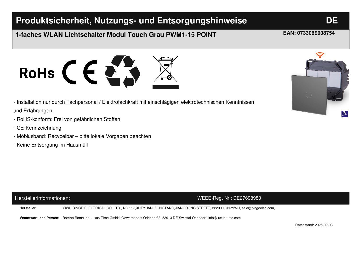 Bitte beachten Sie, dass es sich bei diesem Angebot nur um das Touch-WLAN-Lichtschalter-Modul OHNE Glasrahmen handelt. Die Glasabdeckung des Touch-Moduls ist Bestandteil des Lieferumfangs.