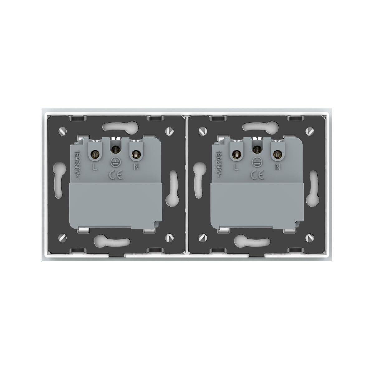 Livolo EC Steckdosen-Modul mit zweifachem Glasrahmen in Weiß Die Livolo EC Steckdose ermöglicht es Ihnen zusammen mit dem Livolo EC Gateway , die Geräte, die an die Steckdose angeschlossen werden, per App zu steuern oder eine Routine zu hinterlegen. Durch die Livolo Home App kann die Steckdose von überall gesteuert werden. Auch die Sprachsteuerung über Google Home oder Amazon Alexa ist möglich. Bitte beachten Sie, dass die Livolo EC Produkte nur mit dem Livolo EC Gateway genutzt werden können. Mit ein paar Klicks in der App können Sie z. B. festlegen, dass die Kaffeemaschine jeden Morgen zu einer bestimmten Uhrzeit angeschaltet wird. In Kombination mit der passenden Glasblende wird diese Steckdose zu einem echten Hingucker. Einfache und schnelle Montage, sowohl vertikal als auch horizontal . In unserem Shop finden Sie auch Spreizkrallen (LG-01) im 2er Pack, für Unterputzdosen ohne Verschraubungsmöglichkeit. Geeignet für Hohlwände und ältere Häuser (Baujahr vor 1970). Bei Verwendung von Spreizkrallen sind 68 mm große Unterputzdosen besser geeignet. Die Module werden mittels der beiliegenden Metallrahmen durch Schrauben an den Unterputzdosen befestigt. Der Austausch erfolgt wie bei anderen Steckdosen-Herstellern. Ersetzen Sie einfach Ihre alten Steckdosen durch ein neues, langlebiges Design. Die Verkabelung bleibt die gleiche. Die Lichtschalter- und Steckdosen-Module sind für Unterputzdosen mit 60-68 mm Durchmesser geeignet . Der Lochabstand für Mehrfach-Blenden beträgt 71 mm. Bei uns erhalten Sie die komplette Livolo Bandbreite; von einem einfachen Wipp-Lichtschalter bis zum smarthome-fähigen Touch-Rollladenschalter. Technische Daten: Betriebsspannung: 100-250V Stromspannung: 50/60Hz 16A Entfernung: max. innen 10m, freie Fläche 20m Schutzart: IP 20 Lebensdauer: über 50000 Male Abmessungen: 151 mm x 80 mm x 45 mm Lieferumfang: Im Lieferumfang enthalten ist: