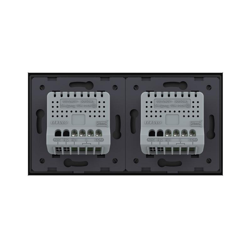 Livolo zwei einfache Funk-Lichtschalter-Module mit zweifacher Glasblende in schwarzDies sind zwei einfache Livolo Funk-Lichtschalter, zum ein- und ausschalten zweier unterschiedlicher Leuchte bzw. Leuchtengruppe. Die Funk-Funktion ermöglicht die Steuerung per Fernbedienung oder (mit der everHome CloudBox als Gateway) auch per App (everHome App). Unsere Touch- Lichtschalter können mit allen Arten von Lampen verwendet werden , einschließlich Glühlampen, Halogenlampen & Energiesparlampen. Ausnahme : LED-Strips.