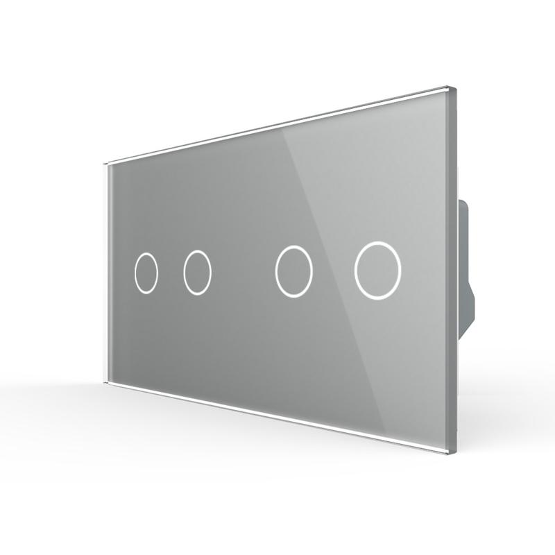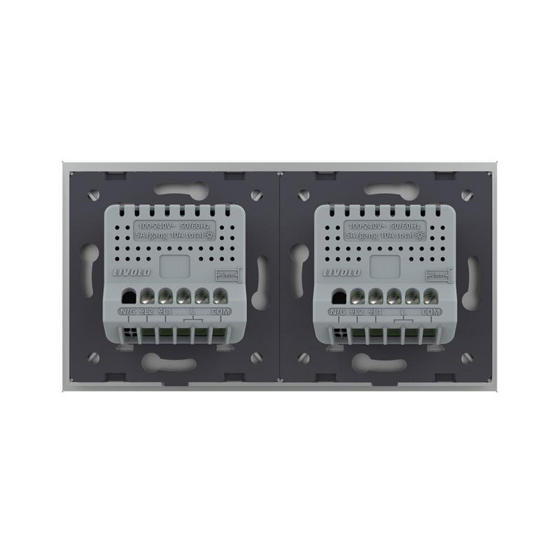 Livolo 2 EC-Rollladenschalter mit zweifacher Glasblende in Grau Dies sind zwei Livolo EC-Rollladenschalter, zum hoch- und runterfahren sowie pausieren jeweils eines Rollladen, einer Markise, eines Raffstores oder einer Jalousie. Die EC-Funktion ermöglicht die Steuerung auch per App (Livolo App), wenn Sie das Livolo EC Gateway verwenden. Über die App ist auch das Festlegen eines Zeitplans möglich. Durch die Kombination mit der passenden Glasblende werden diese Schalter mit moderner Sensortechnik zu einem echten Hingucker. Einfache und schnelle Montage, sowohl vertikal als auch horizontal . Durch leichtes Berühren der Kreisfläche wird der Rollladenschalter betätigt. Die Kontur der Berührungsfläche ist dezent beleuchtet , so dass eine einfache Bedienung zu jeder Tageszeit möglich ist. Vor allem im Dunkeln ist es einfach den Schalter zu finden. Im An-Modus leuchtet die Umrandung des Touchfeldes Rot, im Aus-Modus Blau. Durch ein weiteres Betätigen des Schalters können Sie den Rollladenmotor stoppen. In unserem Shop finden Sie auch Spreizkrallen (LG-01) im 2er Pack, für Unterputzdosen ohne Verschraubungsmöglichkeit. Geeignet für Hohlwände und ältere Häuser (Baujahr vor 1970). Bei Verwendung von Spreizkrallen sind 68 mm große Unterputzdosen besser geeignet. Die Module werden mittels der beiliegenden Metallrahmen durch Schrauben an den Unterputzdosen befestigt. Der Austausch erfolgt wie bei anderen Wipp-Schalter-Herstellern. Ersetzen Sie einfach Ihre alten Wipp-Schalter durch ein neues, langlebiges Design. Die Verkabelung bleibt die gleiche. Die Lichtschalter- und Steckdosen-Module sind für Unterputzdosen mit 60-68 mm Durchmesser geeignet . Der Lochabstand für Mehrfach-Blenden beträgt 71 mm. Bei uns erhalten Sie die komplette Livolo Bandbreite; von einem einfachen Wipp-Lichtschalter bis zum smarthome-fähigen Touch-Rollladenschalter. Fragen? Rufen Sie uns an oder senden Sie uns eine E-Mail. Wir beraten Sie gerne! Technische Daten: Betriebsspannung: AC 220V-250V Stromstärke: 5A Stromlast: 2000W Lebensdauer über 100.000 Male Abmessungen:151 x 80 x 34 mm Lieferumfang: Im Lieferumfang enthalten ist: - 2 x Livolo Innenleben Touch-Schalter, gemäß Bestellung - 1 x Livolo Glasblende, gemäß Bestellung - Bedienungsanleitung Info zur Installation: der Anschluss erfolgt OHNE Strom und Glasblende, nach der Montage können Sie die Glasblende aufsetzten und den Strom wieder einschalten. Lassen Sie dem Touch Schalter, vor dem betätigen 3 Minuten ruhen. Nach Ablauf der Zeit kann der Rollladenschalter betätigt werden. Sollten Sie diese Hinweise nicht befolgen, kann es vorkommen dass der Rollladenschalter nicht reagiert.