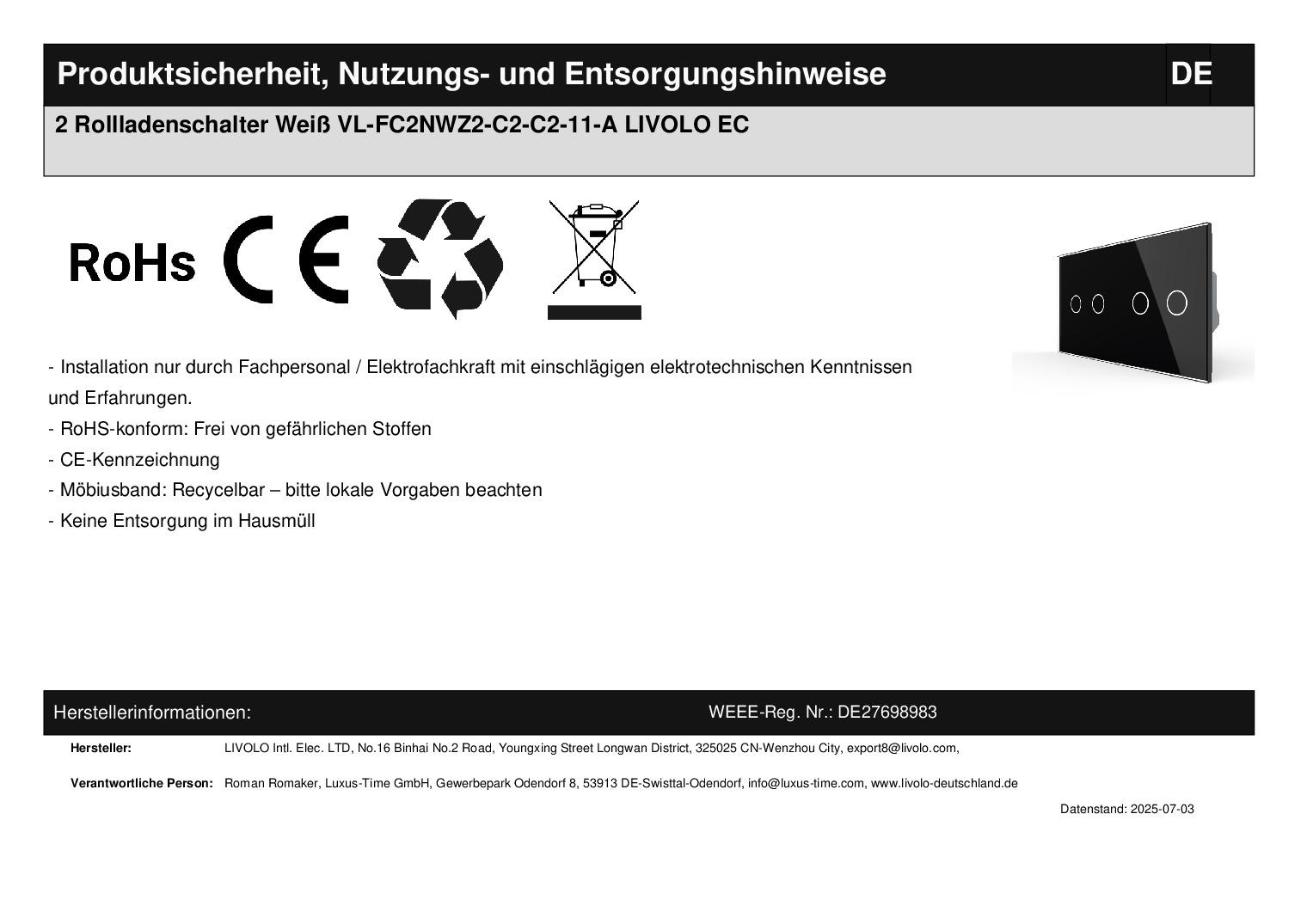 Herstellerangaben:LIVOLO INTERNATIONAL ELECTRIC LTD