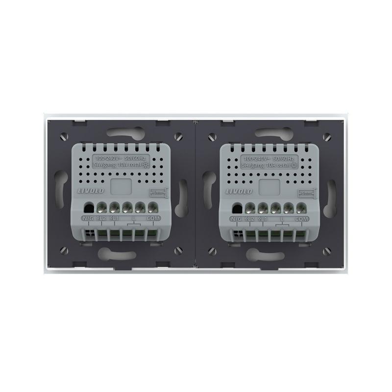 Livolo 2 EC-Rollladenschalter mit zweifacher Glasblende in Weiß Dies sind zwei Livolo EC-Rollladenschalter, zum hoch- und runterfahren sowie pausieren jeweils eines Rollladen, einer Markise, eines Raffstores oder einer Jalousie. Die EC-Funktion ermöglicht die Steuerung auch per App (Livolo App), wenn Sie das Livolo EC Gateway verwenden. Über die App ist auch das Festlegen eines Zeitplans möglich. Durch die Kombination mit der passenden Glasblende werden diese Schalter mit moderner Sensortechnik zu einem echten Hingucker. Einfache und schnelle Montage, sowohl vertikal als auch horizontal . Durch leichtes Berühren der Kreisfläche wird der Rollladenschalter betätigt. Die Kontur der Berührungsfläche ist dezent beleuchtet , so dass eine einfache Bedienung zu jeder Tageszeit möglich ist. Vor allem im Dunkeln ist es einfach den Schalter zu finden. Im An-Modus leuchtet die Umrandung des Touchfeldes Rot, im Aus-Modus Blau. Durch ein weiteres Betätigen des Schalters können Sie den Rollladenmotor stoppen. In unserem Shop finden Sie auch Spreizkrallen (LG-01) im 2er Pack, für Unterputzdosen ohne Verschraubungsmöglichkeit. Geeignet für Hohlwände und ältere Häuser (Baujahr vor 1970). Bei Verwendung von Spreizkrallen sind 68 mm große Unterputzdosen besser geeignet. Die Module werden mittels der beiliegenden Metallrahmen durch Schrauben an den Unterputzdosen befestigt. Der Austausch erfolgt wie bei anderen Wipp-Schalter-Herstellern. Ersetzen Sie einfach Ihre alten Wipp-Schalter durch ein neues, langlebiges Design. Die Verkabelung bleibt die gleiche. Die Lichtschalter- und Steckdosen-Module sind für Unterputzdosen mit 60-68 mm Durchmesser geeignet . Der Lochabstand für Mehrfach-Blenden beträgt 71 mm. Bei uns erhalten Sie die komplette Livolo Bandbreite; von einem einfachen Wipp-Lichtschalter bis zum smarthome-fähigen Touch-Rollladenschalter. Fragen? Rufen Sie uns an oder senden Sie uns eine E-Mail. Wir beraten Sie gerne! Technische Daten: Betriebsspannung: AC 220V-250V Stromstärke: 5A Stromlast: 2000W Lebensdauer über 100.000 Male Abmessungen:151 x 80 x 34 mm Lieferumfang: Im Lieferumfang enthalten ist: - 2 x Livolo Innenleben Touch-Schalter, gemäß Bestellung - 1 x Livolo Glasblende, gemäß Bestellung - Bedienungsanleitung Info zur Installation: der Anschluss erfolgt OHNE Strom und Glasblende, nach der Montage können Sie die Glasblende aufsetzten und den Strom wieder einschalten. Lassen Sie dem Touch Schalter, vor dem betätigen 3 Minuten ruhen. Nach Ablauf der Zeit kann der Rollladenschalter betätigt werden. Sollten Sie diese Hinweise nicht befolgen, kann es vorkommen dass der Rollladenschalter nicht reagiert.