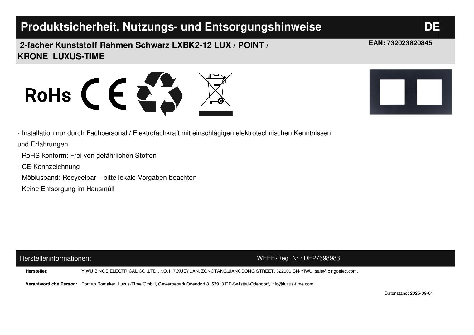 Titel: | 2-facher Kunststoff Rahmen Schwarz LXBK2-12 LUX / POINT / KRONE LUXUS-TIME |