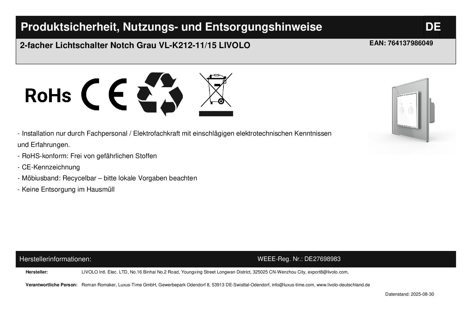 Herstellerangaben:LIVOLO INTERNATIONAL ELECTRIC LTD