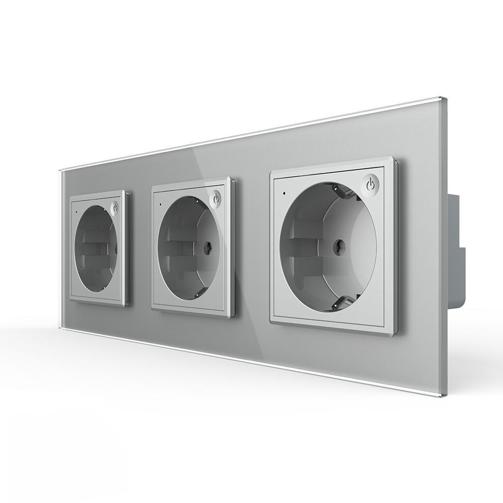 Livolo EC Steckdosen-Module mit 3-Fach Glasrahmen in Grau Die Livolo EC Steckdose ermöglicht es Ihnen zusammen mit dem Livolo EC Gateway, die Geräte, die an die Steckdose angeschlossen werden, per App zu steuern oder eine Routine zu hinterlegen. Durch die Livolo Home App kann die Steckdose von überall gesteuert werden. Auch die Sprachsteuerung über Google Home oder Amazon Alexa ist möglich. Bitte beachten Sie, dass die Livolo EC Produkte nur mit dem Livolo EC Gateway genutzt werden können. Mit ein paar Klicks in der App können Sie z. B. festlegen, dass die Kaffeemaschine jeden Morgen zu einer bestimmten Uhrzeit angeschaltet wird. In Kombination mit der passenden Glasblende wird diese Steckdose zu einem echten Hingucker. Einfache und schnelle Montage, sowohl vertikal als auch horizontal . In unserem Shop finden Sie auch Spreizkrallen (LG-01) im 2er Pack, für Unterputzdosen ohne Verschraubungsmöglichkeit. Geeignet für Hohlwände und ältere Häuser (Baujahr vor 1970). Bei Verwendung von Spreizkrallen sind 68 mm große Unterputzdosen besser geeignet. Die Module werden mittels der beiliegenden Metallrahmen durch Schrauben an den Unterputzdosen befestigt. Der Austausch erfolgt wie bei anderen Steckdosen-Herstellern. Ersetzen Sie einfach Ihre alten Steckdosen durch ein neues, langlebiges Design. Die Verkabelung bleibt die gleiche. Die Lichtschalter- und Steckdosen-Module sind für Unterputzdosen mit 60-68 mm Durchmesser geeignet . Der Lochabstand für Mehrfach-Blenden beträgt 71 mm. Bei uns erhalten Sie die komplette Livolo Bandbreite; von einem einfachen Wipp-Lichtschalter bis zum smarthome-fähigen Touch-Rollladenschalter. Technische Daten: Betriebsspannung: 100-250V Stromspannung: 50/60Hz 16A Entfernung: max. innen 10m, freie Fläche 20m Schutzart: IP 20 Lebensdauer: über 50000 Male Abmessungen: 222 mm x 80 mm x 45 mm Lieferumfang: Im Lieferumfang enthalten ist: