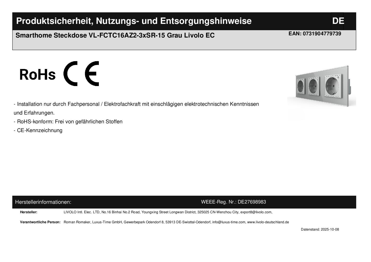 Herstellerangaben:LIVOLO INTERNATIONAL ELECTRIC LTD