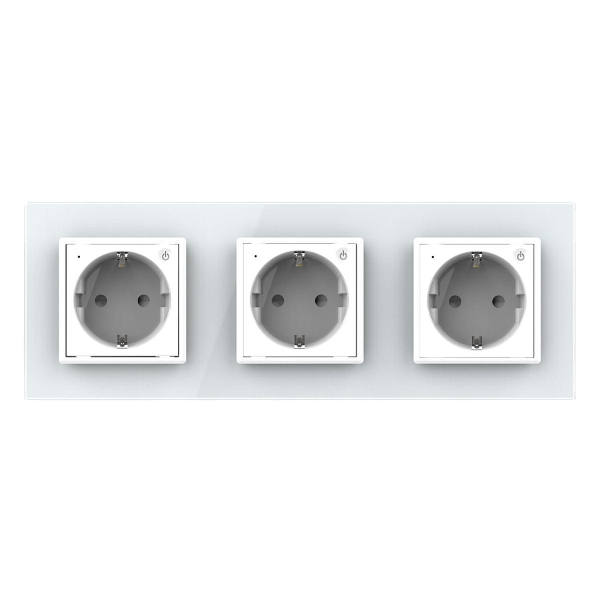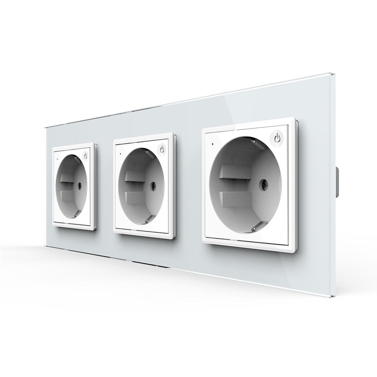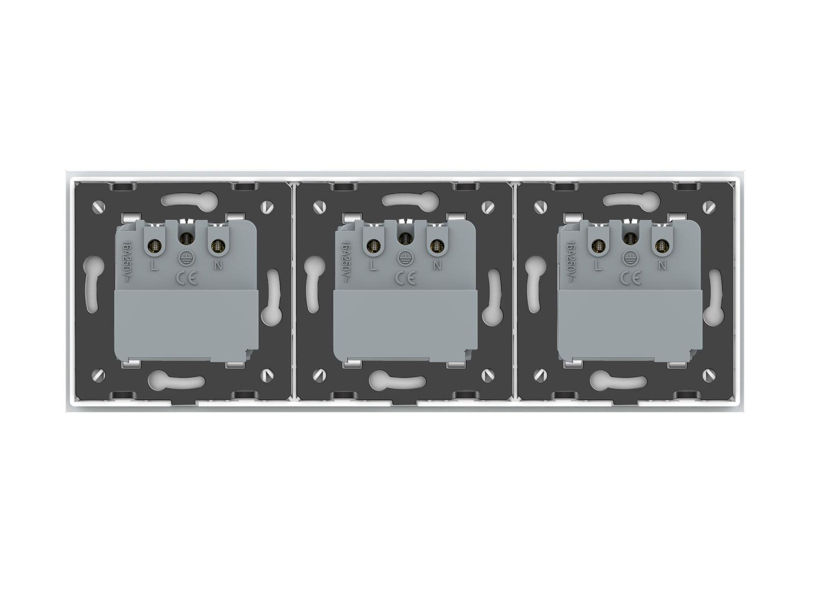 Livolo EC Steckdosen-Module mit dreifachem Glasrahmen in Weiß Die Livolo EC Steckdose ermöglicht es Ihnen zusammen mit dem Livolo EC Gateway , die Geräte, die an die Steckdose angeschlossen werden, per App zu steuern oder eine Routine zu hinterlegen. Durch die Livolo Home App kann die Steckdose von überall gesteuert werden. Auch die Sprachsteuerung über Google Home oder Amazon Alexa ist möglich. Bitte beachten Sie, dass die Livolo EC Produkte nur mit dem Livolo EC Gateway genutzt werden können. Mit ein paar Klicks in der App können Sie z. B. festlegen, dass die Kaffeemaschine jeden Morgen zu einer bestimmten Uhrzeit angeschaltet wird. In Kombination mit der passenden Glasblende wird diese Steckdose zu einem echten Hingucker. Einfache und schnelle Montage, sowohl vertikal als auch horizontal . In unserem Shop finden Sie auch Spreizkrallen (LG-01) im 2er Pack, für Unterputzdosen ohne Verschraubungsmöglichkeit. Geeignet für Hohlwände und ältere Häuser (Baujahr vor 1970). Bei Verwendung von Spreizkrallen sind 68 mm große Unterputzdosen besser geeignet. Die Module werden mittels der beiliegenden Metallrahmen durch Schrauben an den Unterputzdosen befestigt. Der Austausch erfolgt wie bei anderen Steckdosen-Herstellern. Ersetzen Sie einfach Ihre alten Wipp-Schalter durch ein neues, langlebiges Design. Die Verkabelung bleibt die gleiche. Die Lichtschalter- und Steckdosen-Module sind für Unterputzdosen mit 60-68 mm Durchmesser geeignet . Der Lochabstand für Mehrfach-Blenden beträgt 71 mm. Bei uns erhalten Sie die komplette Livolo Bandbreite; von einem einfachen Wipp-Lichtschalter bis zum smarthome-fähigen Touch-Rollladenschalter. Technische Daten: Betriebsspannung: 100-250V Stromspannung: 50/60Hz 16A Entfernung: max. innen 10m, freie Fläche 20m Schutzart: IP 20 Lebensdauer: über 50000 Male Abmessungen: 222 mm x 80 mm x 45 mm Lieferumfang: Im Lieferumfang enthalten ist: