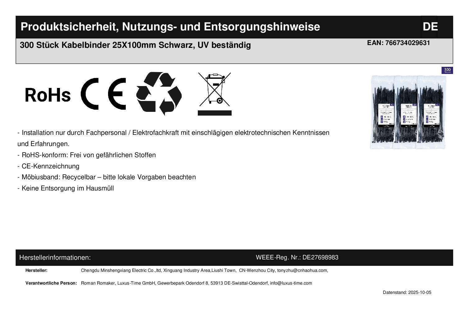 Titel: 300 Stück Kabelbinder 25X100mm Schwarz, UV beständig
