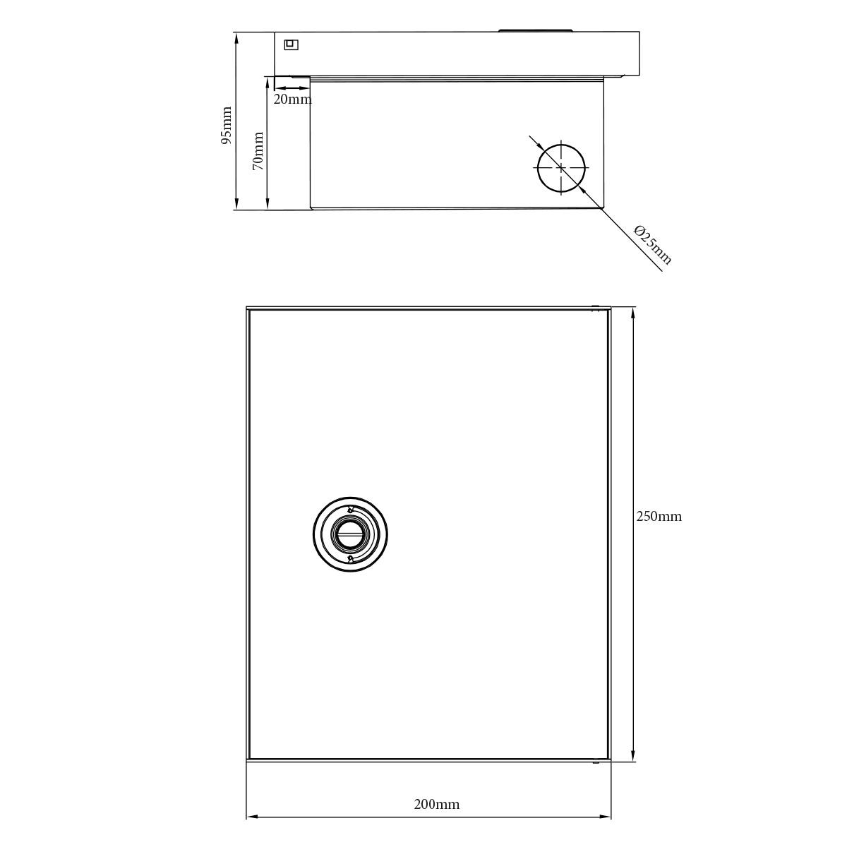 Abmessungen:Deckel: 25,10 x 20,10 cm Dose: 22,50 x 16,10 cm Lochmaß für Kabel: D-2,50 cm Tiefe (Dose): 7,50 cm Lochmaß für Einsätze: 4,50 x 4,50 cm (4x) Lieferumfang: Im Lieferumfang enthalten ist: