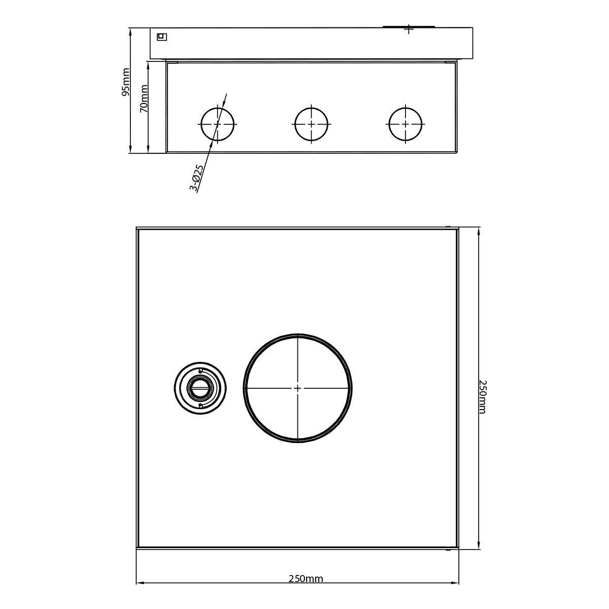 Bodentank Fußbodensteckdose Edelstahl mit verschließbarem Deckel und Tubus-Kabelauslass Dieser Bodentank mit Deckel in Edelstahl-Optik kann in Hohlböden und Estrichböden eingebaut werden. Durch die IP54 - Zertifizierung im geschlossenen Zustand kann der Bodentank z. B. auch in nass gepflegten Bereichen eingesetzt werden. Es können die 45er Livolo Module verwendet werden. Bei geschlossenem Deckel ist der Bodentank gegen Staub und Spritzwasser geschützt . Er bietet auch im Alltag ein hohes Maß an Flexibilität, da bei Nichtgebrauch der Deckel komplett versenkt werden kann und somit sehr unauffällig ist. Während der Deckel geschlossen ist, kann dieser verschlossen werden, während die Kabel über den Tubus im Deckel herausgeführt werden können. Für den Einbau in eine Wand oder einen Boden (z. B. Estrich oder Hohlböden) ist eine Schutzdeckel nötig. Dieser ist nicht im Lieferumfang enthalten. Die Einsätze werden in den abschraubbaren Gerätebecher eingerastet und dann angeschlossen. Zum Schluss wird der Edelstahldeckel verschraubt. Technische Daten: Schutzart: IP54 (geschlossener Zustand) Löcher: 8 Stück Geeignet für Estrich Kunststoff-Einbaudose mit Krallen Abmessungen: Deckel: 250 x 250 mm Höhe Deckel: 25 mm Tiefe (Dose): 70 mm Lochmaß für Einsätze: 45mm x 45mm Lieferumfang: Im Lieferumfang enthalten ist: 1x Bodentank 8-Fach verschließbar IP54