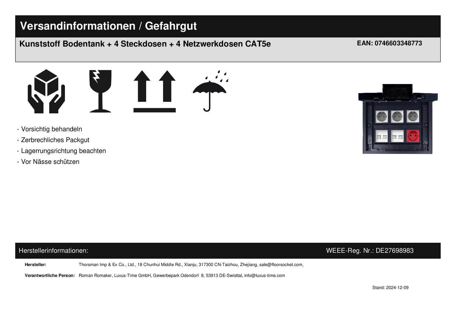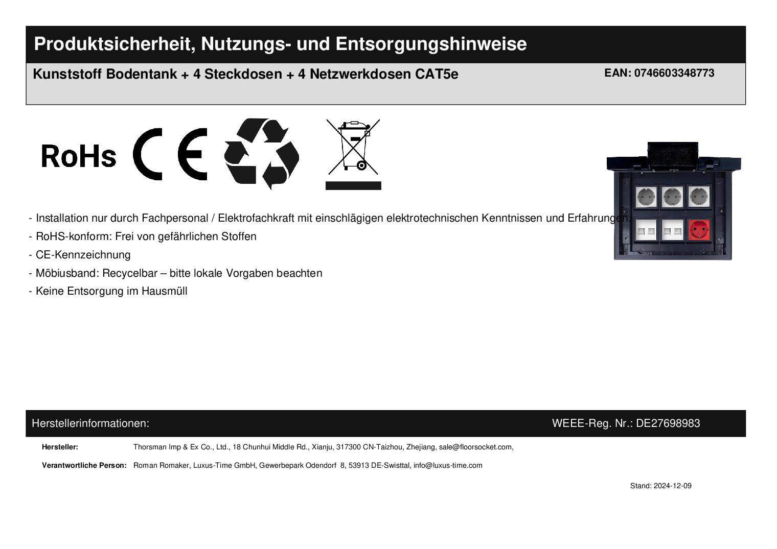 3x Steckdosen VDE weiß 1x Steckdosen VDE rot 4x Netzwerk-Modul CAT6 weiß Herstellerangaben:Wenzhou Thorsman Import & Export Co., Ltd.