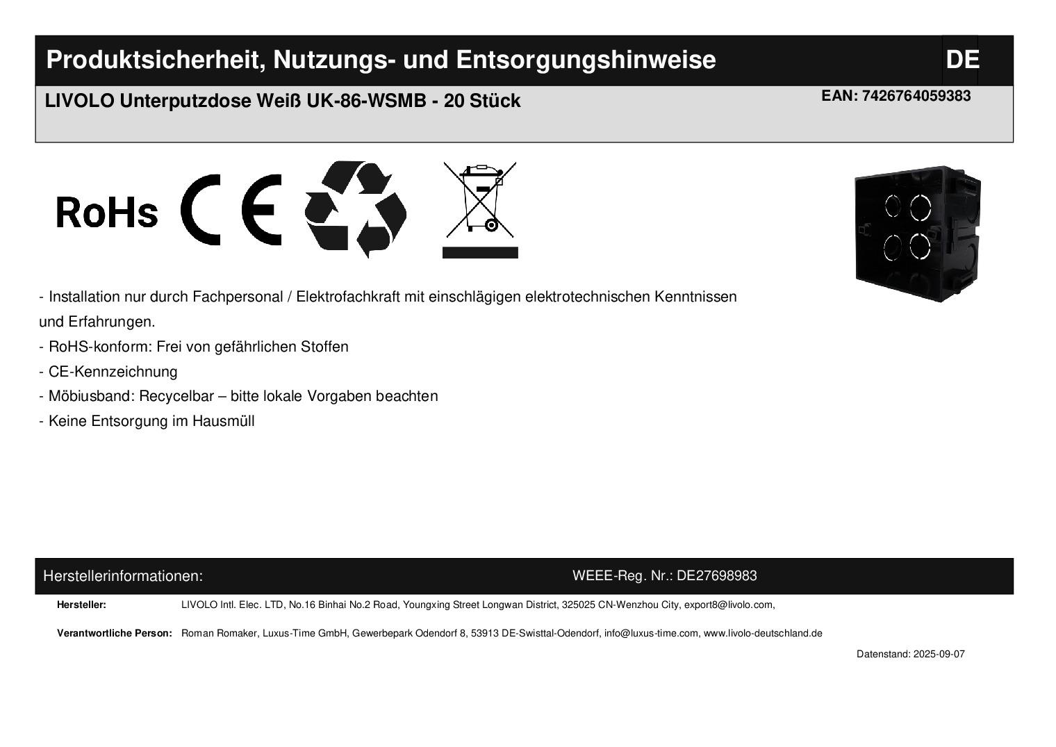 Herstellerangaben:LIVOLO INTERNATIONAL ELECTRIC LTD