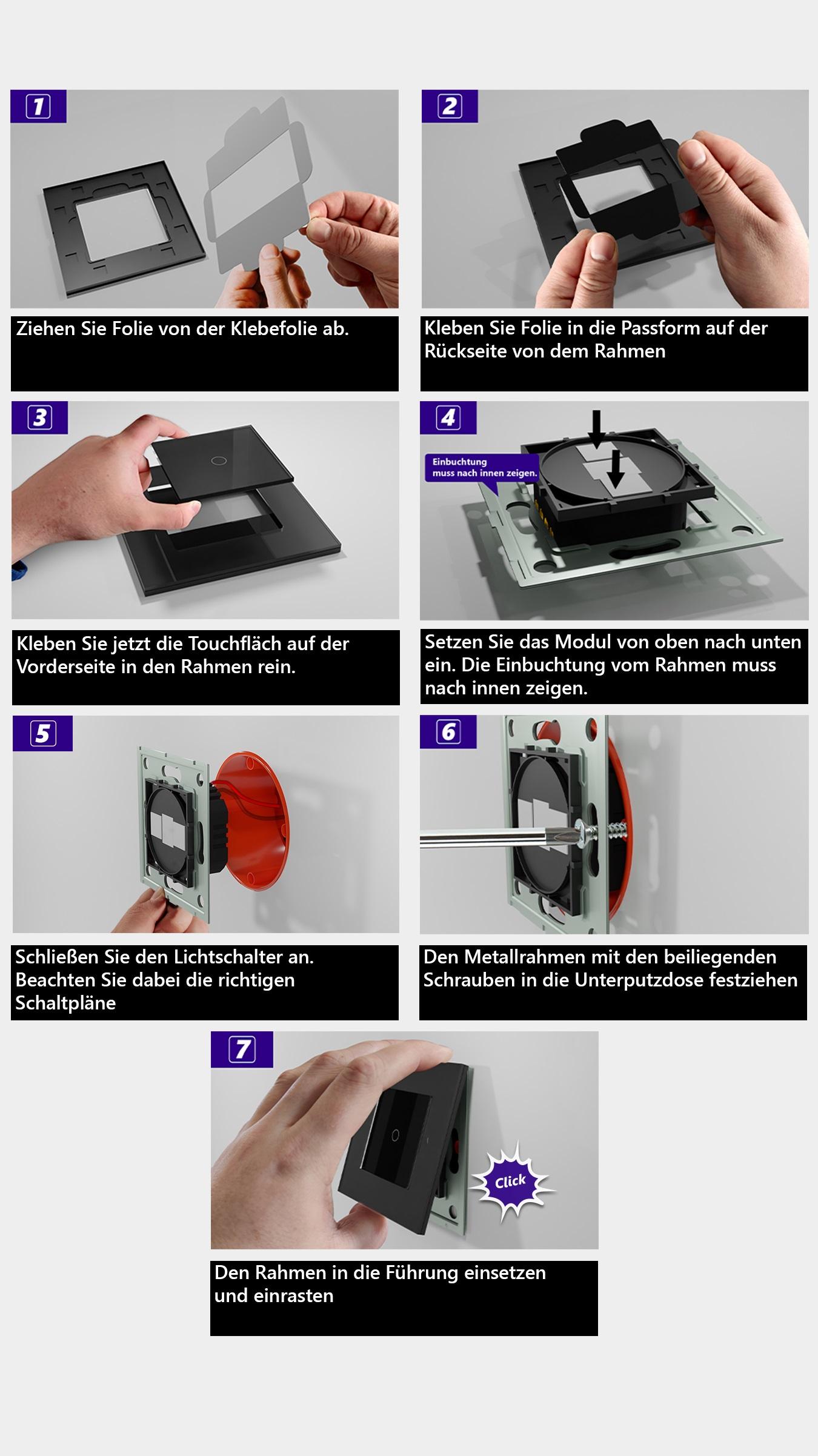 Point zweifaches Touchfeld in WeißBitte beachten Sie, dass es sich bei diesem Angebot nur um ein Touchfeld OHNE Modul handelt.Dies ist ein zweifaches Point Glas Touchfeld und kann nur für Luxus-Time / Point Module verwendet werden. Es dient als Ersatzteil für schon vorhandene Touch-Schalter oder falls ein anderer Farb-Look gewünscht ist (z. B. in Kombination mit einem andersfarbigen Rahmen). Das moderne Design, sowie die Glasoberfläche machen dieses Touchfeld zu etwas Besonderem. Die Touchfelder werden mittels der den Modulen beiliegenden Klebepads an den Alu- / Glasrahmen befestigt. Bei uns erhalten Sie die komplette Luxus-Time bzw. Point Bandbreite; von einem einfachen Wipp-Lichtschalter bis zum smarthome-fähigen Touch-Rollladenschalter. Fragen? Rufen Sie uns an oder senden Sie uns eine E-Mail. Wir beraten Sie gerne! Abmessungen :47 x 47 x 1 mm Herstellerangaben:YIWU BINGE ELECTRICAL CO.,LTD.