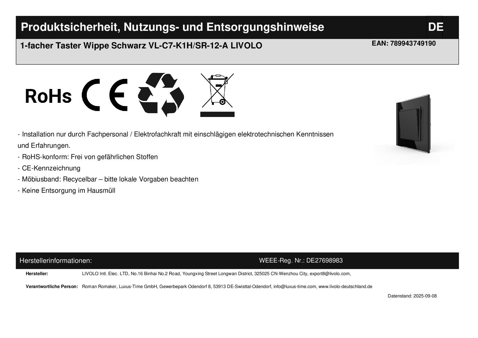 - 1 x Livolo Innenleben Wipp-Schalter, gemäß Bestellung