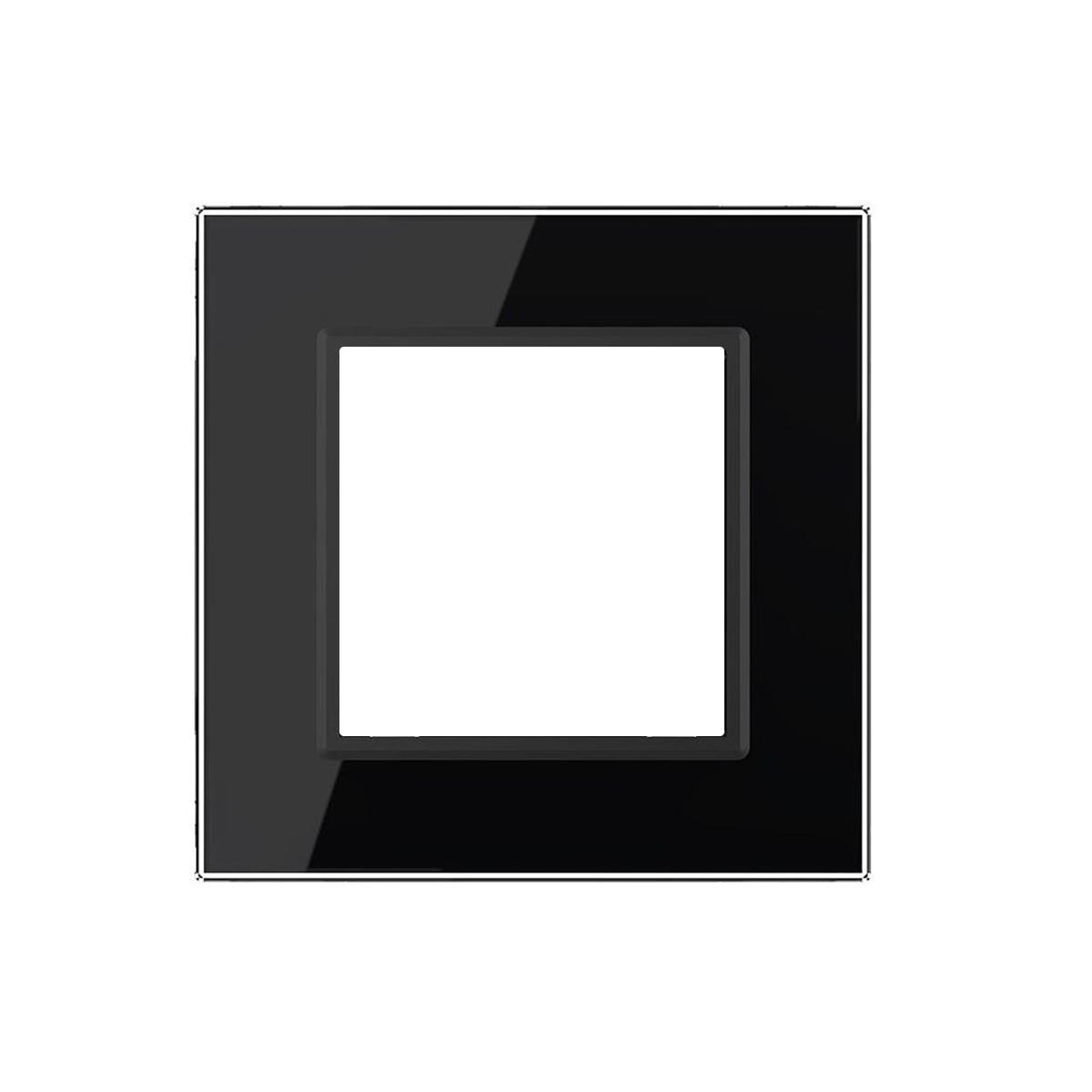 Livolo Glasblende für ein Modul in komplett SchwarzBitte beachten Sie, dass es sich bei diesem Angebot nur um einen Glasrahmen OHNE Modul handelt. Dies ist eine einfache Livolo Glasblende mit einem Ausschnitt. Diese kann z. B. für eine Steckdose oder ein Raumthermostat verwendet werden. Das moderne Design, sowie die schwarze Glasoberfläche und der schwarz-farbige Dekorahmen machen diese Blende zu etwas Besonderem. Einfache und schnelle Montage, sowohl vertikal als auch horizontal . Die Module werden mittels der den Modulen beiliegenden Metallrahmen durch Schrauben an den Unterputzdosen befestigt. Der Austausch erfolgt wie bei anderen Wipp-Schalter-Herstellern. Ersetzen Sie einfach Ihre alten Wipp-Schalter durch ein neues, langlebiges Design. Die Lichtschalter- und Steckdosen-Module sind für Unterputzdosen mit 60 mm Durchmesser geeignet . Der Lochabstand für Mehrfach-Blenden beträgt 71 mm . Bei uns erhalten Sie die komplette Livolo Bandbreite; von einem einfachen Wipp-Lichtschalter bis zum smarthome-fähigen Touch-Rollladenschalter. Fragen? Rufen Sie uns an oder senden Sie uns eine E-Mail. Wir beraten Sie gerne! Abmessungen:80 x 80 x 8 mm Herstellerangaben:LIVOLO INTERNATIONAL ELECTRIC LTD
