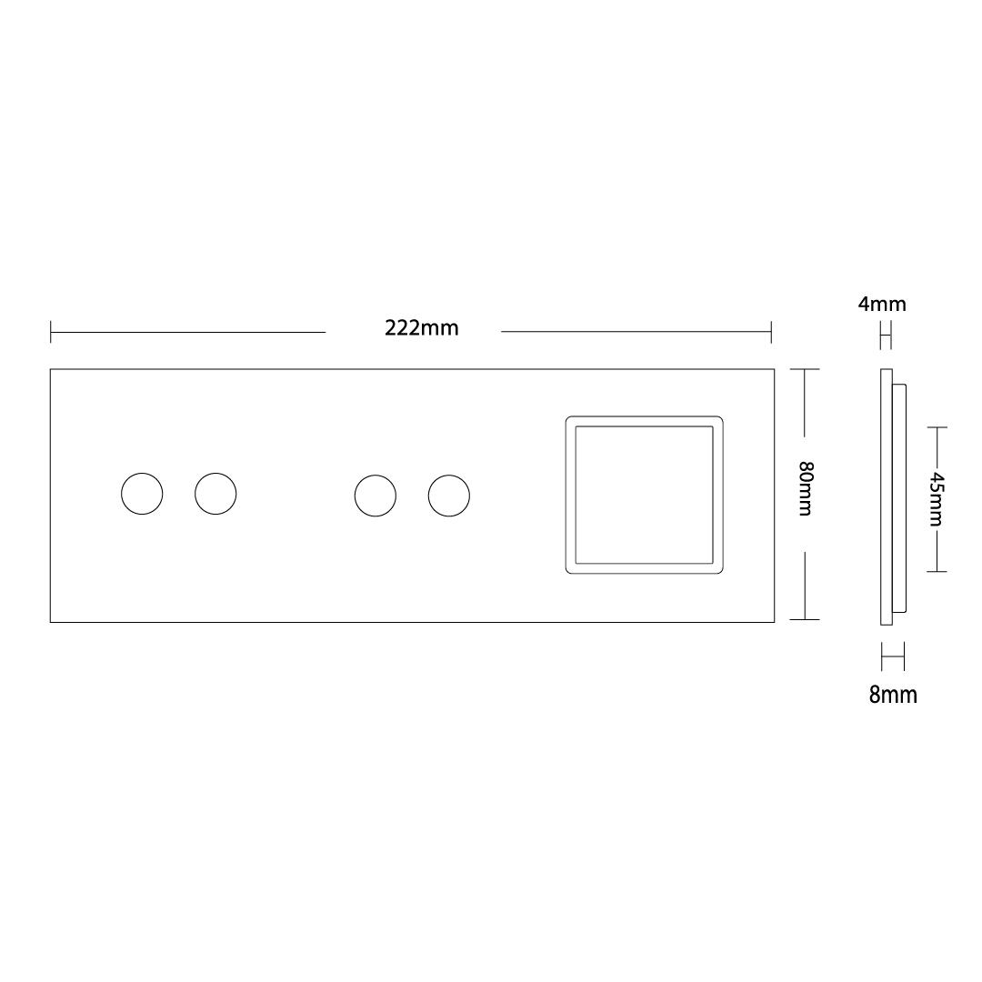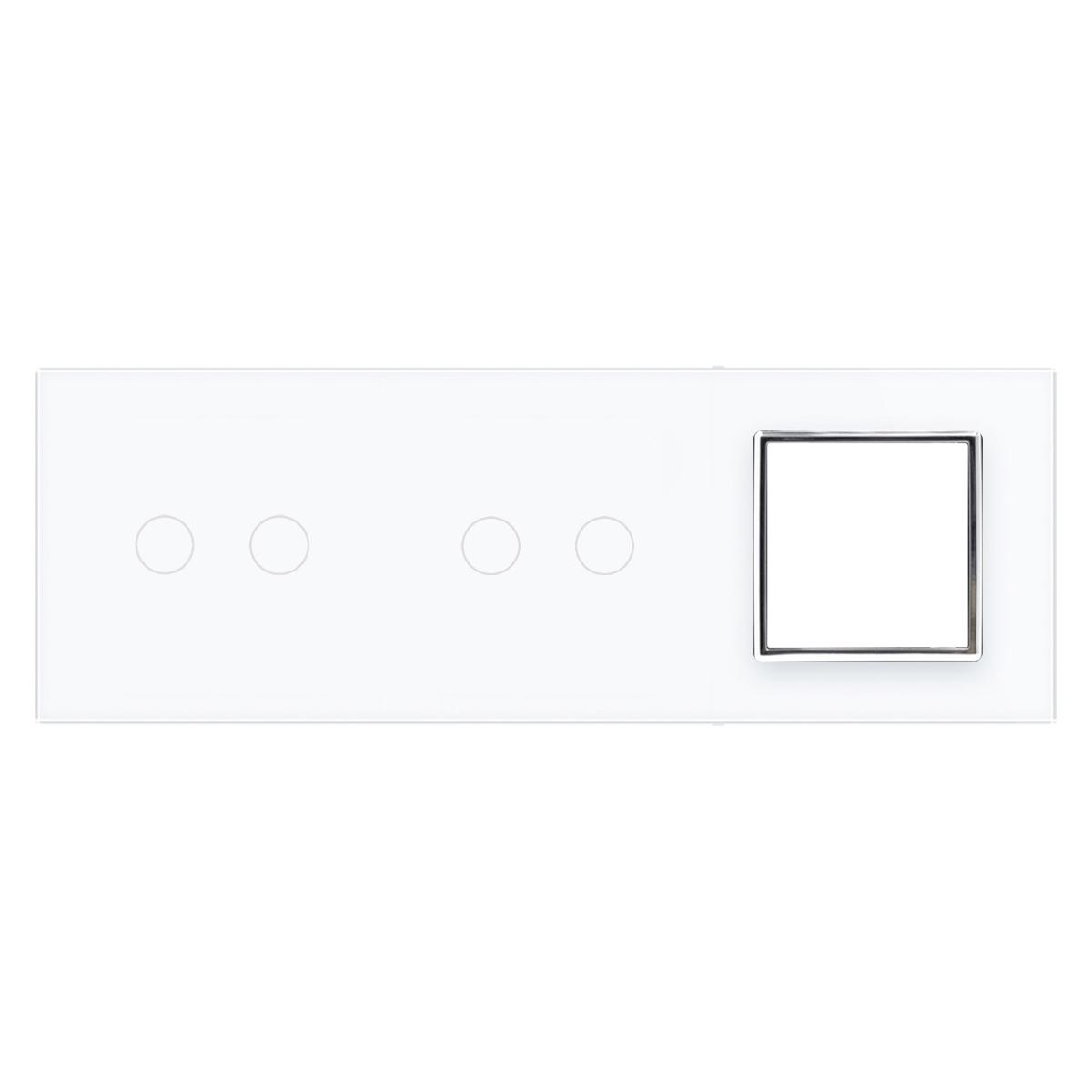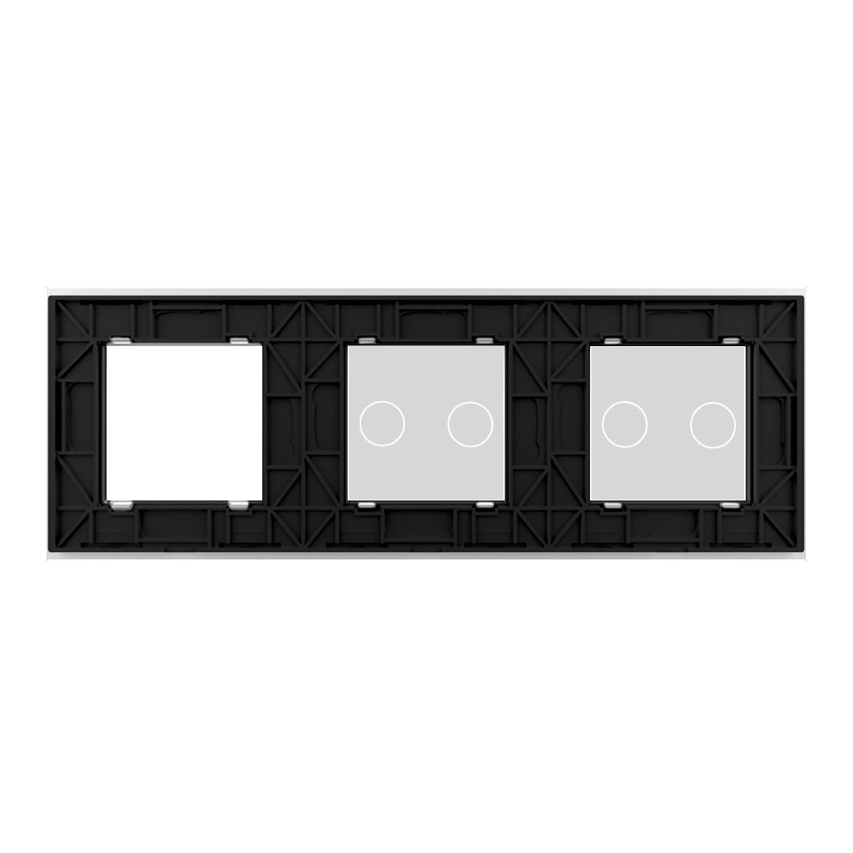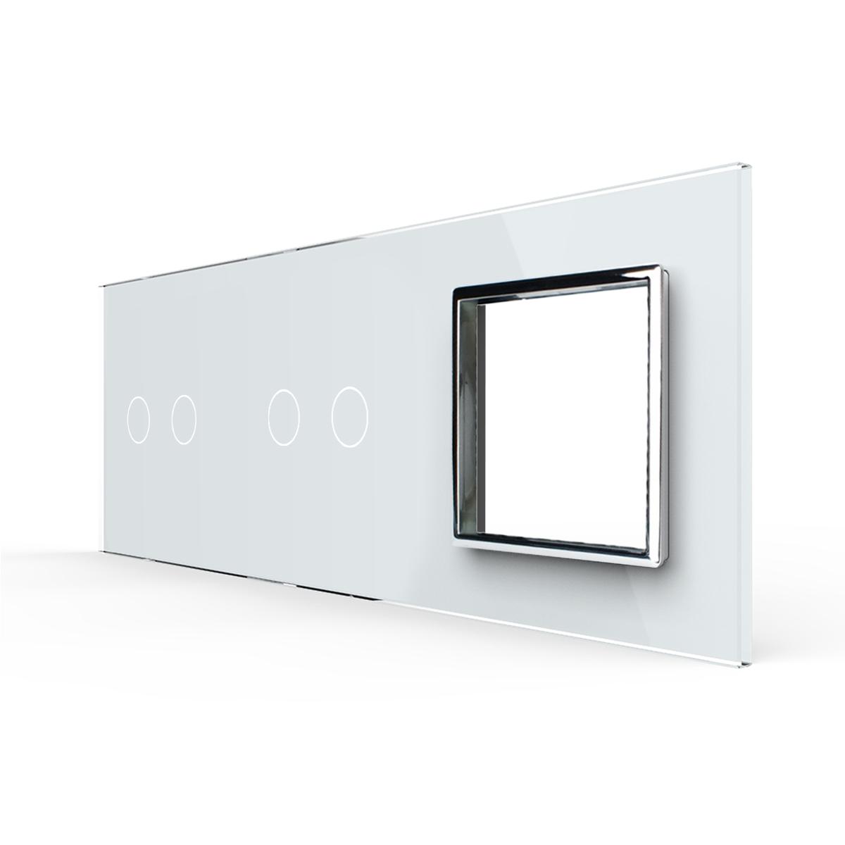 Livolo Glasblende für zwei zweifache Touch-Schalter und ein Modul in Weiß Bitte beachten Sie, dass es sich bei diesem Angebot nur um einen Glasrahmen OHNE Modul handelt. Dies ist eine dreifache Livolo Glasblende, die für zwei Touch-Schalter mit zwei Berührungspunkten und einem Ausschnitt für Module verwendet werden. Dies können z. B. zwei Rollladenschalter und eine Steckdose sein. Das moderne Design, sowie die weiße Glasoberfläche und der chrom-farbige Dekorahmen machen diese Blende zu etwas Besonderem. Einfache und schnelle Montage, sowohl vertikal als auch horizontal . Die Module werden mittels der den Modulen beiliegenden Metallrahmen durch Schrauben an den Unterputzdosen befestigt. Der Austausch erfolgt wie bei anderen Wipp-Schalter-Herstellern. Ersetzen Sie einfach Ihre alten Wipp-Schalter durch ein neues, langlebiges Design. Die Lichtschalter- und Steckdosen-Module sind für Unterputzdosen mit 60 mm Durchmesser geeignet . Der Lochabstand für Mehrfach-Blenden beträgt 71 mm . Bei uns erhalten Sie die komplette Livolo Bandbreite; von einem einfachen Wipp-Lichtschalter bis zum smarthome-fähigen Touch-Rollladenschalter. Fragen? Rufen Sie uns an oder senden Sie uns eine E-Mail. Wir beraten Sie gerne! Abmessungen :222 x 80 x 8 mm Herstellerangaben:LIVOLO INTERNATIONAL ELECTRIC LTD