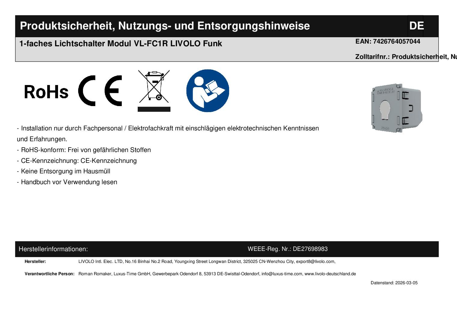 Herstellerangaben:LIVOLO INTERNATIONAL ELECTRIC LTD