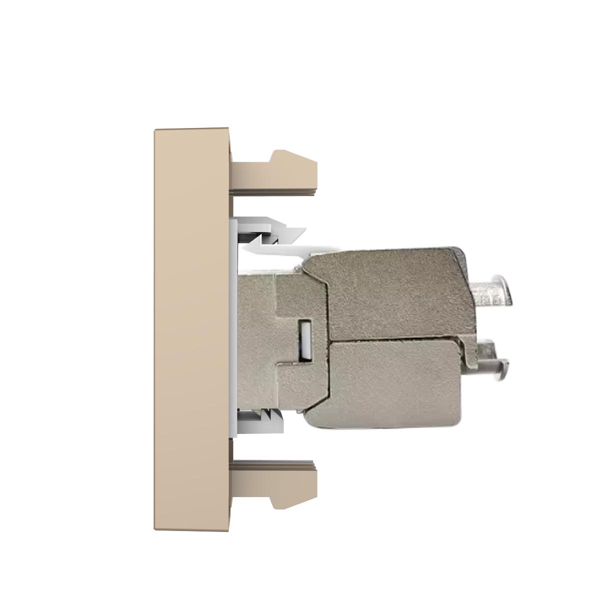 LIVOLO halbe RJ45 Netzwerkdose mit Staubschutzkappe CAT6A in Gold Das Modul verfügt über 360° Zugentlastung und die Schirmung des Moduls unterstützt Übertragungsgeschwindigkeiten bis zu 10 Gbit/s und 250 MHz, wenn die verwendeten Kabel CAT6A oder höher sind. Geeignet für einen Aderquerschnitt zwischen AWG 22 – 24, RJ45-Anschlüsse und die Montage erfolgt ohne Spezialwerkzeug. Einsetzbar für PoE+ (Power over Ethernet). In Kombination mit der passenden Glasblende wird dieses Modul zu einem echten Hingucker. Bitte beachten Sie, dass Sie für den Einbau in eine Glasblende noch einen Metallrahmen benötigen . In unserem Shop finden Sie auch Spreizkrallen (LG-01) im 2er Pack, für Unterputzdosen ohne Verschraubungsmöglichkeit. Geeignet für Hohlwände und ältere Häuser (Baujahr vor 1970). Bei Verwendung von Spreizkrallen sind 68 mm große Unterputzdosen besser geeignet.