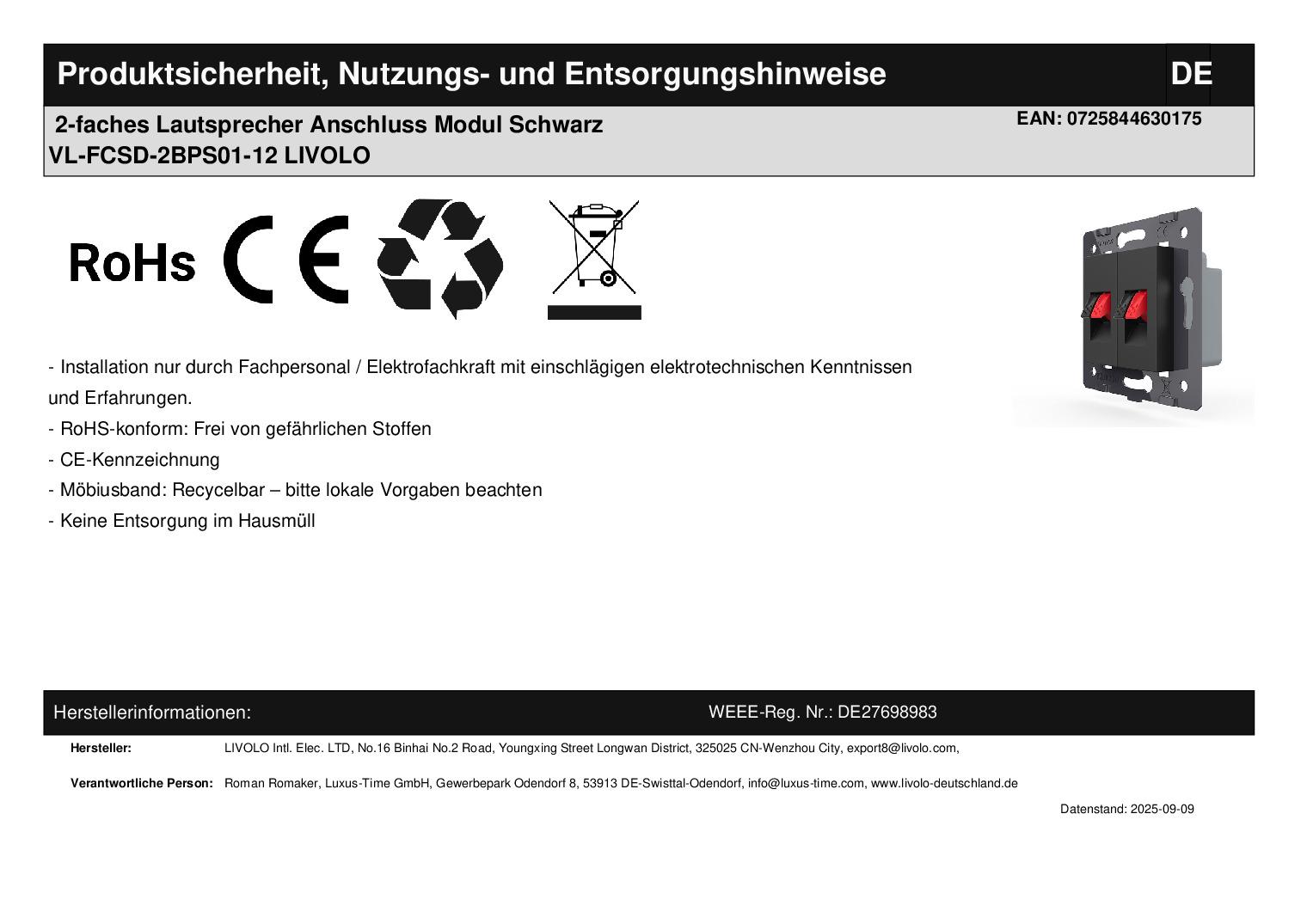 - 1 x Livolo Innenleben Lautsprechermodul, gemäß Bestellung