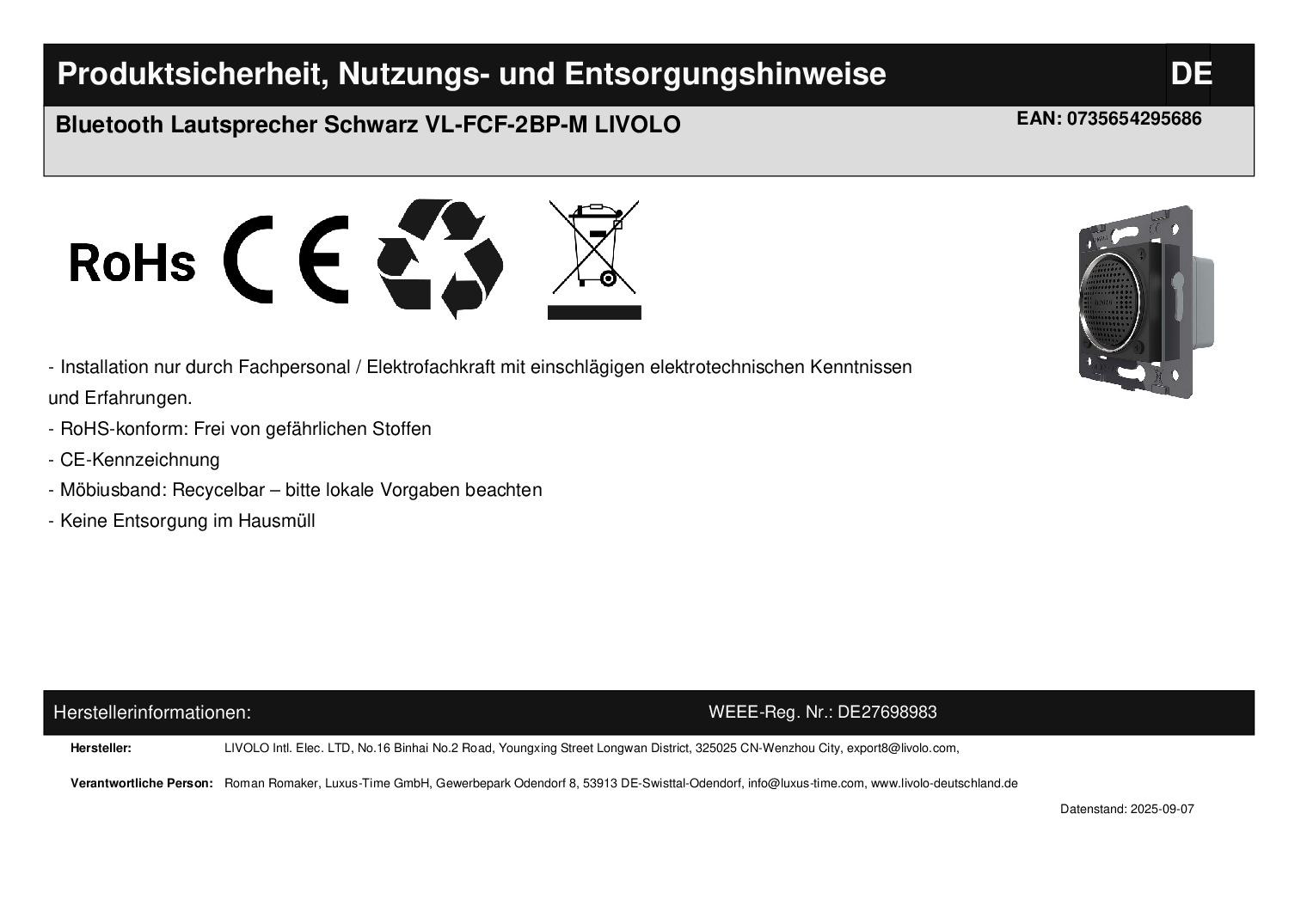 - 1 x Livolo Lautsprecher, gemäß Bestellung - Bedienungsanleitung