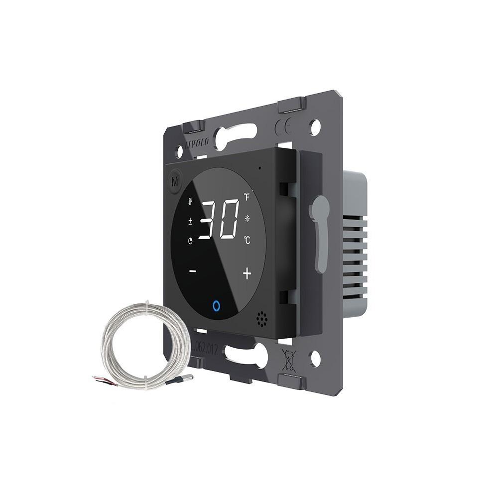 Livolo digitales Raumthermostat mit optionalem, externem Sensor für Fußbodenheizungen in schwarz Bitte beachten Sie, dass es sich bei diesem Angebot nur um ein Modul OHNE Glasblende handelt. Dies ist ein digitales Raumthermostat von Livolo in schwarz mit externem Sensor. Mit diesem Thermostat können Sie die meisten Fußbodenheizungen mit Stellmotoren bedienen ( wasserführend oder elektrisch ), solange die Maximal-Leistung nicht überschritten wird. Durch den externen Bodensensor liefert das Thermostat besonders genaue Erlebnisse. Sie können das Thermostat auch wahlweise ohne externen Sensor verwenden. Dies kann allerdings dazu führen, dass die Messergebnisse ungenauer ausfallen. Einstellbar ist das Thermostat über die Berührungspunkte auf der Vorderseite. Mit diesen kann auch die Display-Helligkeit eingestellt, sowie die Temperatur-Genauigkeit kalibriert werden. Das Display kann nicht komplett ausgeschaltet werden, aber die Helligkeit lässt sich sehr weit herunterreduzieren. In Kombination mit der passenden Glasblende wird dieses Modul zu einem echten Hingucker. Einfache und schnelle Montage, sowohl vertikal als auch horizontal . In unserem Shop finden Sie auch Spreizkrallen (LG-01) im 2er Pack, für Unterputzdosen ohne Verschraubungsmöglichkeit. Geeignet für Hohlwände und ältere Häuser (Baujahr vor 1970). Bei Verwendung von Spreizkrallen sind 68 mm große Unterputzdosen besser geeignet. Die Module werden mittels der Metallrahmen durch Schrauben an den Unterputzdosen befestigt. Der Austausch erfolgt wie bei anderen Wipp-Schalter-Herstellern. Ersetzen Sie einfach Ihre alten Wipp-Schalter durch ein neues, langlebiges Design. Die Verkabelung bleibt die gleiche. Die Lichtschalter- und Steckdosen-Module sind für Unterputzdosen mit 60-68 mm Durchmesser geeignet . Der Lochabstand für Mehrfach-Blenden beträgt 71 mm. Bei uns erhalten Sie die komplette Livolo Bandbreite; von einem einfachen Wipp-Lichtschalter bis zum smarthome-fähigen Touch-Rollladenschalter. Fragen? Rufen Sie uns an oder senden Sie uns eine E-Mail. Wir beraten Sie gerne! Technische Daten: Temperaturgenauigkeit: < 1°C Stromverbrauch: < 0,8W Lebensdauer: > 30.000 Betätigungen Anschlussspannung: 100 ~ 240V 50/60HZ Schaltleistung: 16A 1 Gang Abmessungen:71 x 71 x 28 mm Lieferumfang: Im Lieferumfang enthalten ist: - 1 x Livolo Raumthermostat, gemäß Bestellung - Bedienungsanleitung Achtung nur Innenleben! Passende Glasblenden finden Sie bei uns im Shop! Herstellerangaben:LIVOLO INTERNATIONAL ELECTRIC LTD
