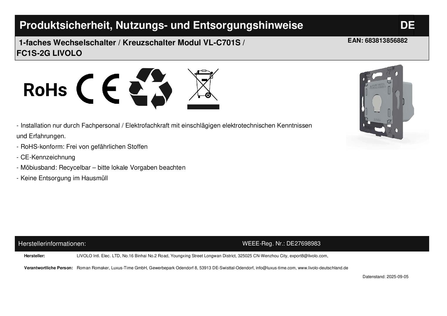 Herstellerangaben:LIVOLO INTERNATIONAL ELECTRIC LTD