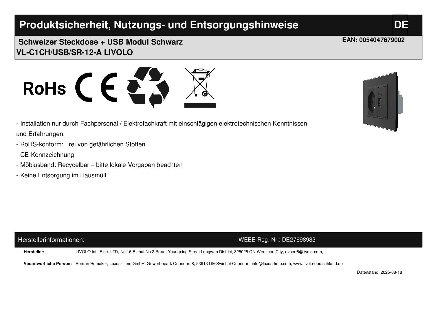 Lieferumfang: Im Lieferumfang enthalten ist: Herstellerangaben:LIVOLO INTERNATIONAL ELECTRIC LTD