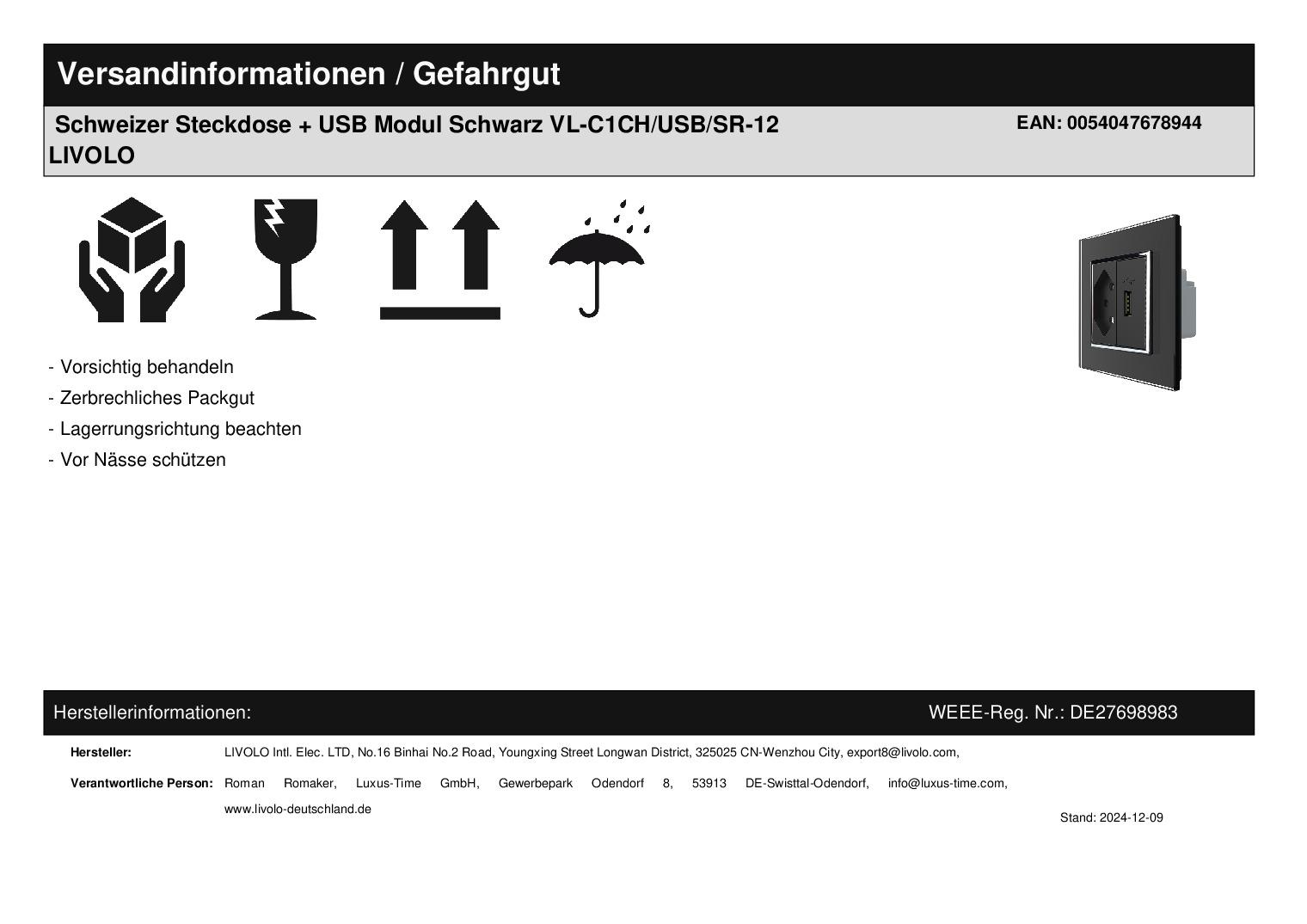 - 1 x Livolo 1/2 USB Modul, gemäß Bestellung