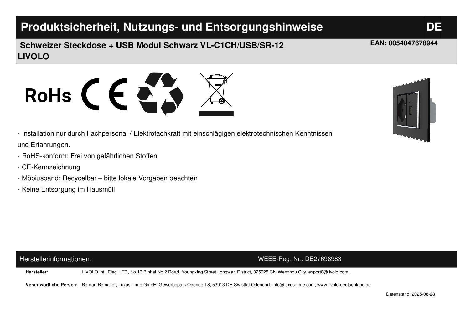 - 1 x Livolo 1/2 Schweizer Steckdose, gemäß Bestellung