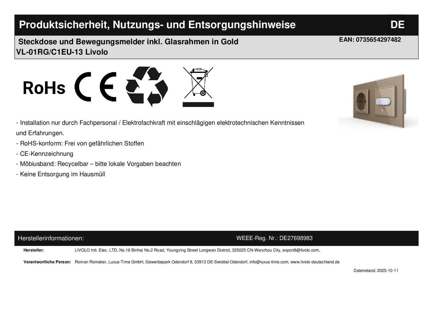 - 1 x Livolo Innenleben Bewegungsmelder, gemäß Bestellung