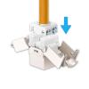 Staubschutzkappe am Modul (abnehmbar) Geeignet: für Cat.6 und Cat.7 – Kabel (Ø 6-10mm) IDC-Klemmen für Leiter: 0,51 - 0,64 mm Ø AWG 24-22 IDC-Klemmen für einen Leiter: 0,13-0,22 mm² AWG 26 (PE-Foamskin), AWG 24 (PE-solid) Zugentlastung/Schirmung: 360° Geschwindigkeit: 10 Gbit/s und 500 MHz Aderquerschnitten: AWG 22-24 Widerbelegbarkeit: 10-mal Fehlstecksicherung: RJ11/12 Kompatibel: RJ45 Netzwerkkabel Abmessungen: