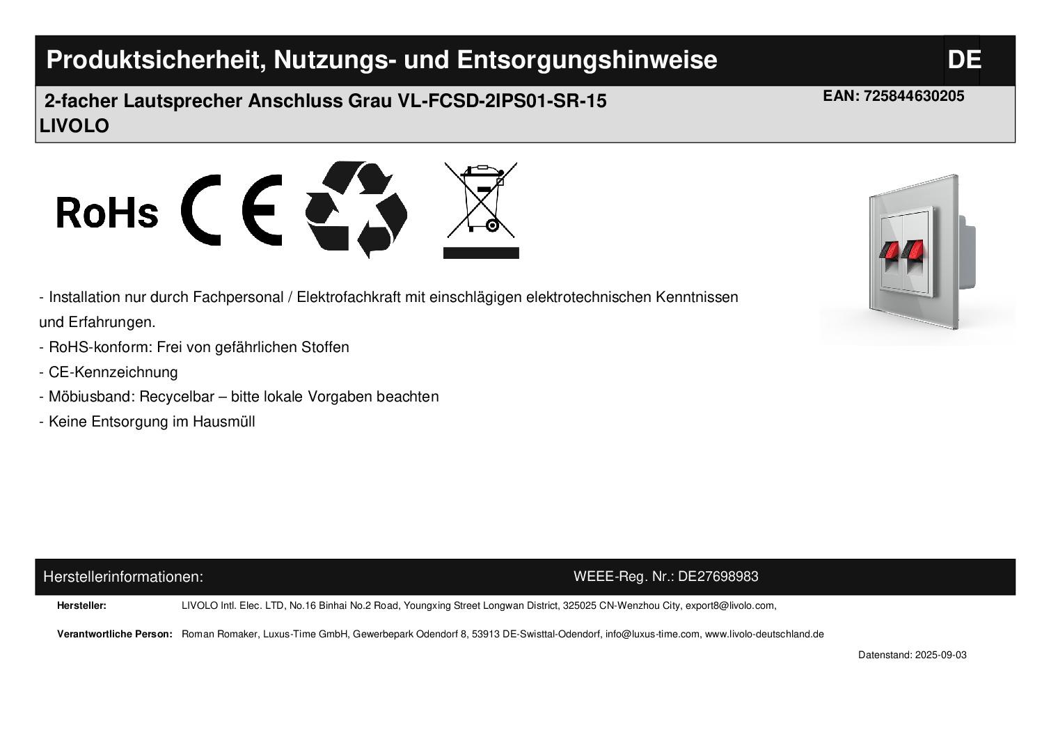 - 1 x Livolo Innenleben Lautsprechermodul, gemäß Bestellung