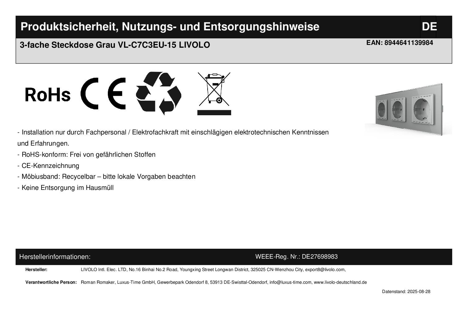 Herstellerangaben:LIVOLO INTERNATIONAL ELECTRIC LTD