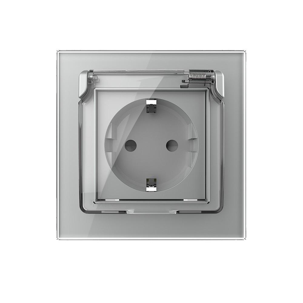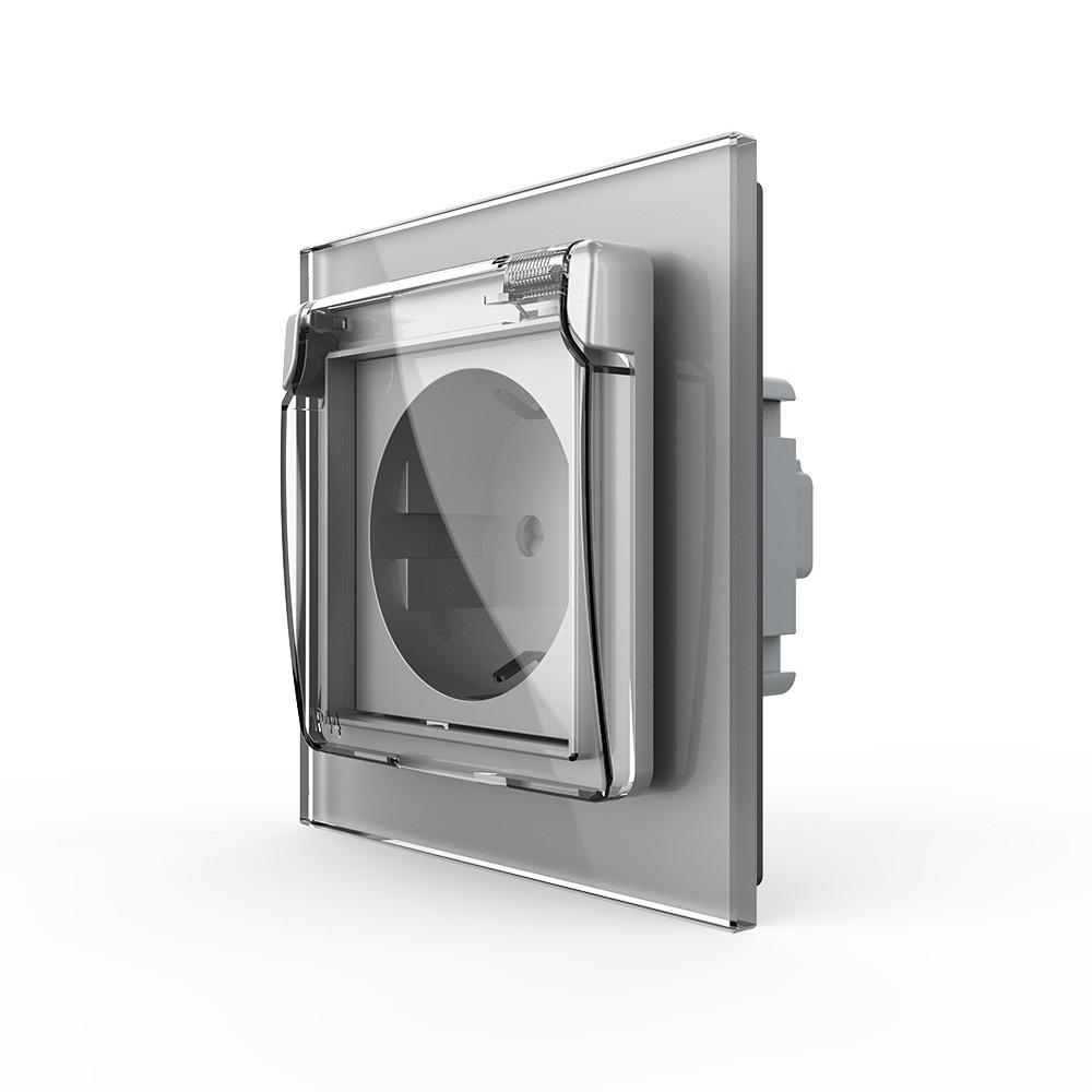 Livolo einfaches Steckdosen-Modul inkl. Schutzabdeckung mit Glasblende in grau