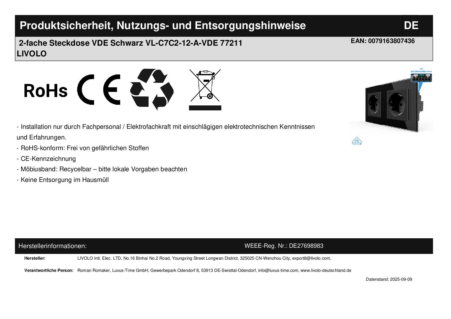2 x Livolo Innenleben Steckdose VDE, gemäß Bestellung