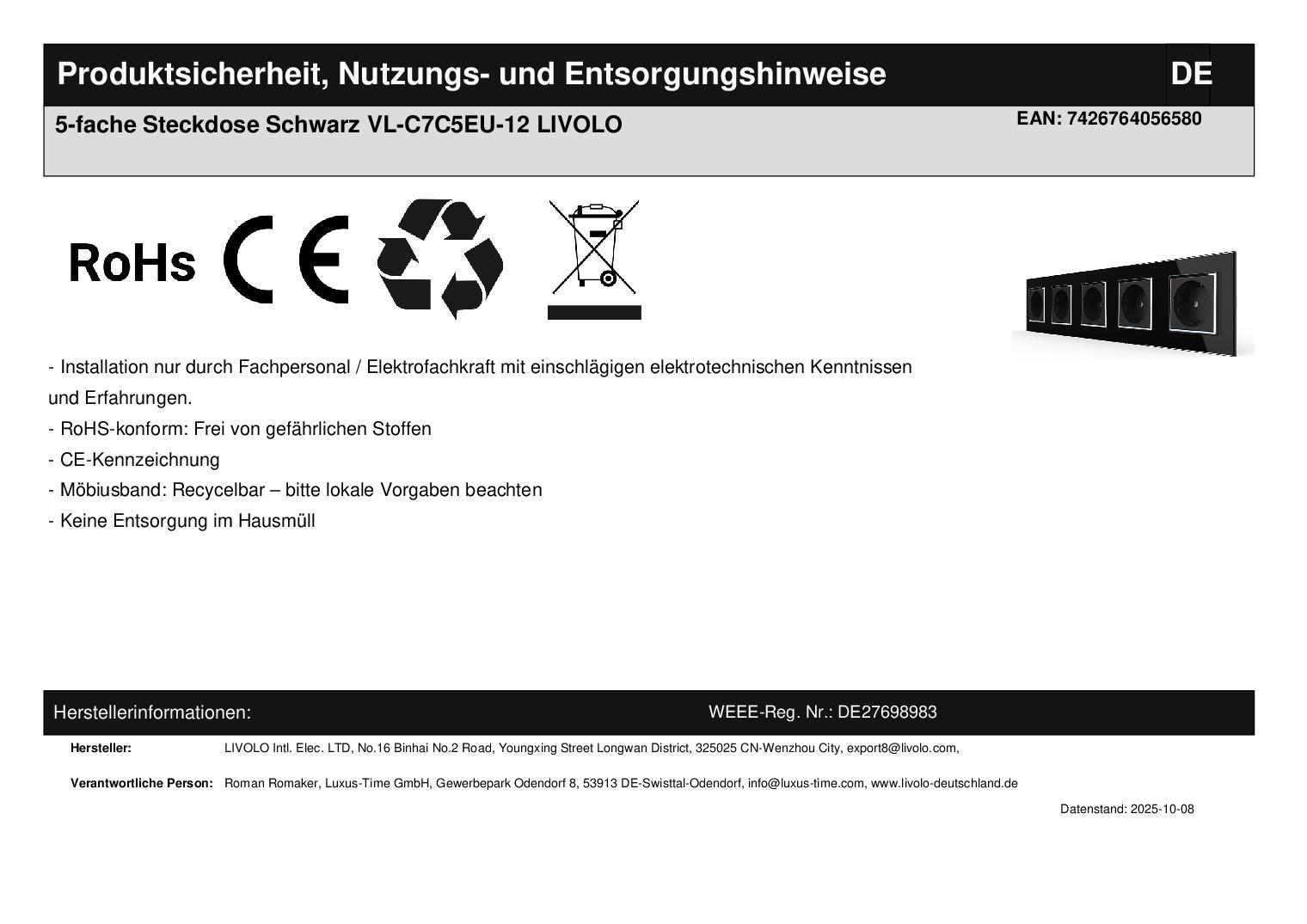Herstellerangaben:LIVOLO INTERNATIONAL ELECTRIC LTD