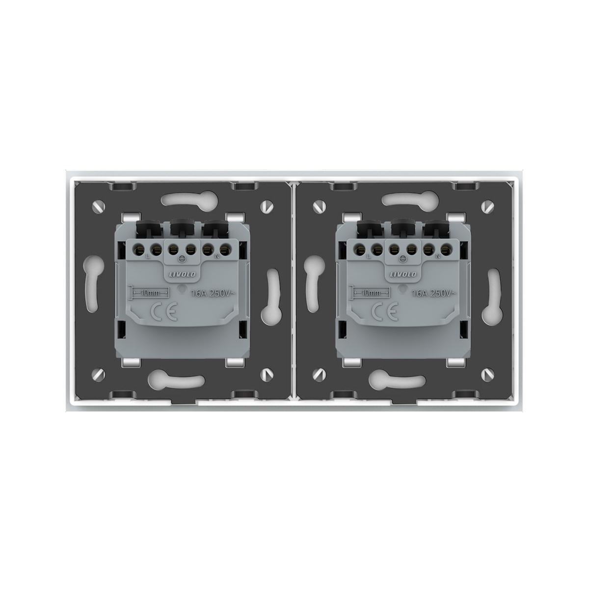 Livolo Kombination zwei Steckdosen-Module mit 2-fach Glasblende in komplett weiß