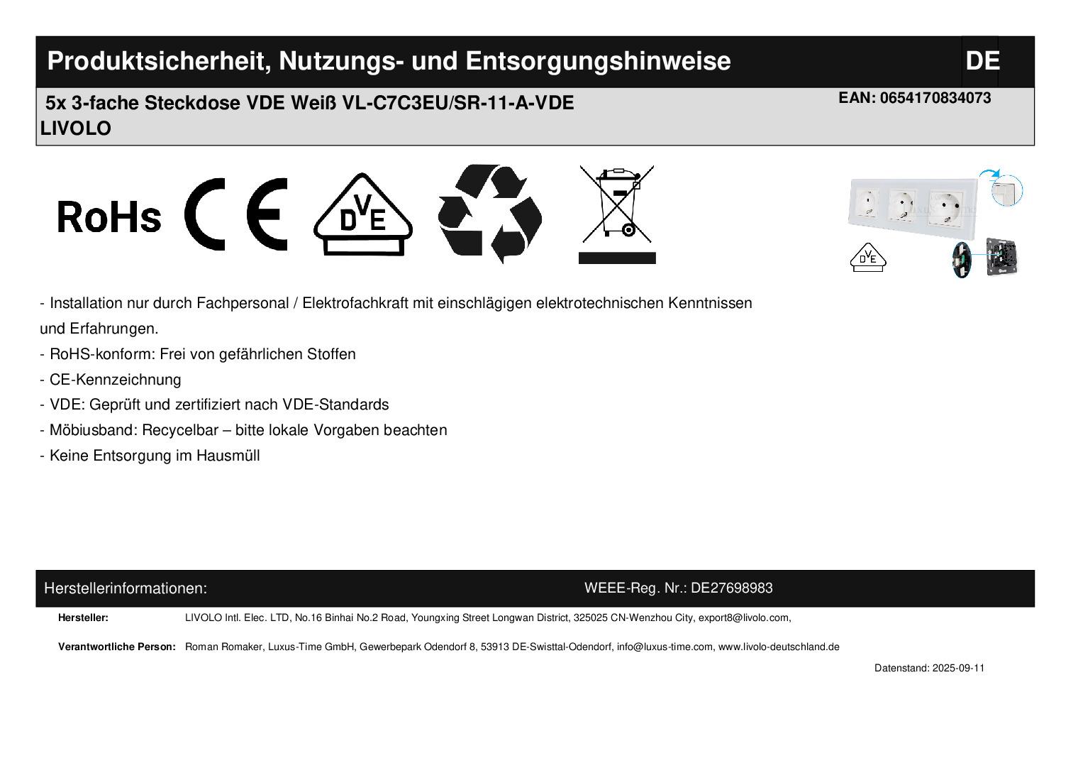 Herstellerangaben:LIVOLO INTERNATIONAL ELECTRIC LTD