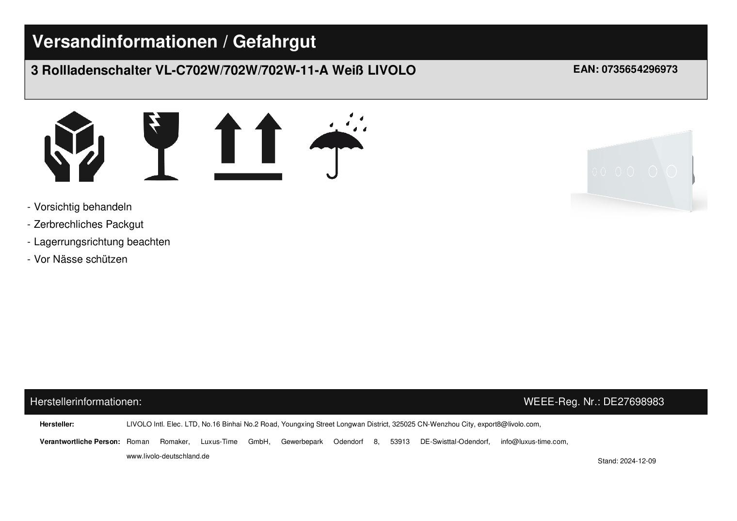 Herstellerangaben:LIVOLO INTERNATIONAL ELECTRIC LTD