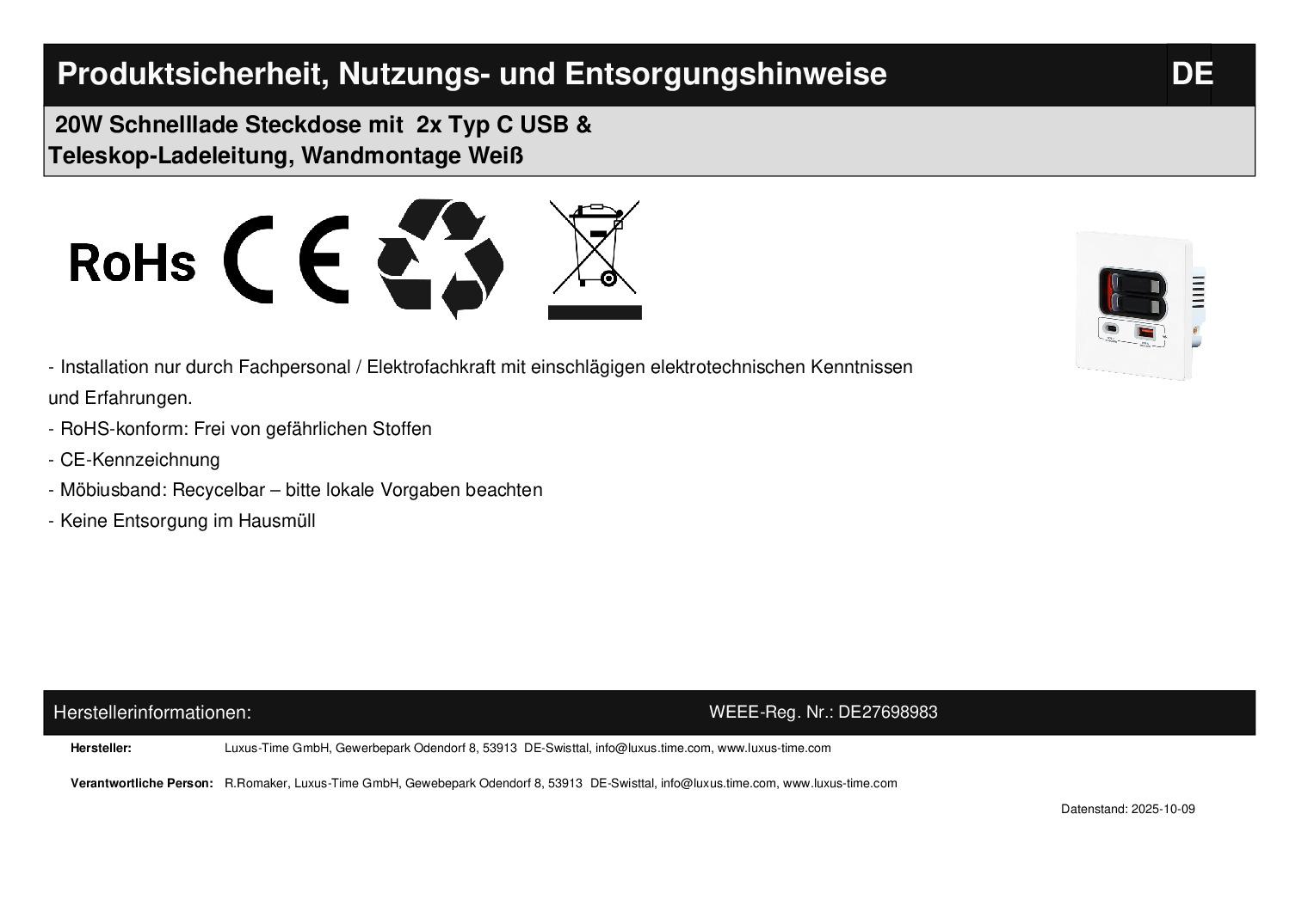 Fragen? Herstellerangaben:Importeur: Luxus-Time GmbH
