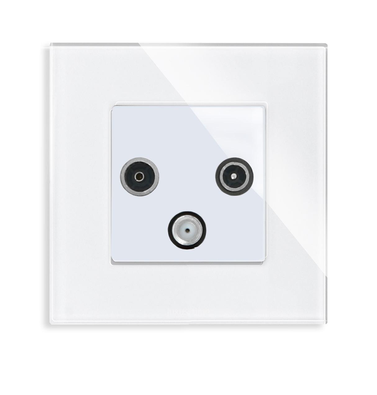 TV-SAT-FM Durchgangsmodul mit einfachem Glasrahmen in WeißBei diesem Modul handelt es sich um eine Durchgangsdose, die zur Weiterleitung geeignet ist. Dieses Modul findet Verwendung, wenn Sie eine Satellitenschüssel oder einen Kabelanschluss nutzen.Einfache und schnelle Montage, sowohl vertikal als auch horizontal . Der Austausch erfolgt wie bei anderen Wipp-Schalter-Herstellern. Ersetzen Sie einfach Ihre alten Wipp-Schalter durch ein neues, langlebiges Design. Die Lichtschalter- und Steckdosen-Module sind für Unterputzdosen mit 60 mm Durchmesser geeignet . Die Module werden mittels der den Glasblenden beiliegenden Metallrahmen durch Schrauben an den Unterputzdosen befestigt. Bei uns erhalten Sie die komplette Luxus-Time Bandbreite; von einem einfachen Wipp-Lichtschalter bis zum smarthome-fähigen Touch-Rollladenschalter. Fragen? Rufen Sie uns an oder senden Sie uns eine E-Mail. Wir beraten Sie gerne! Abmessungen:86 mm x 86 mm x 25 mm Herstellerangaben:YIWU BINGE ELECTRICAL CO.,LTD.