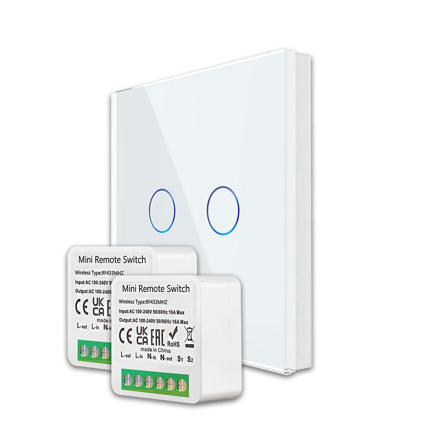 Funk-Empfänger / Schalter Kombination aus zwei Empfängern und einem zweifachen, batteriebetriebenen Lichtschalter