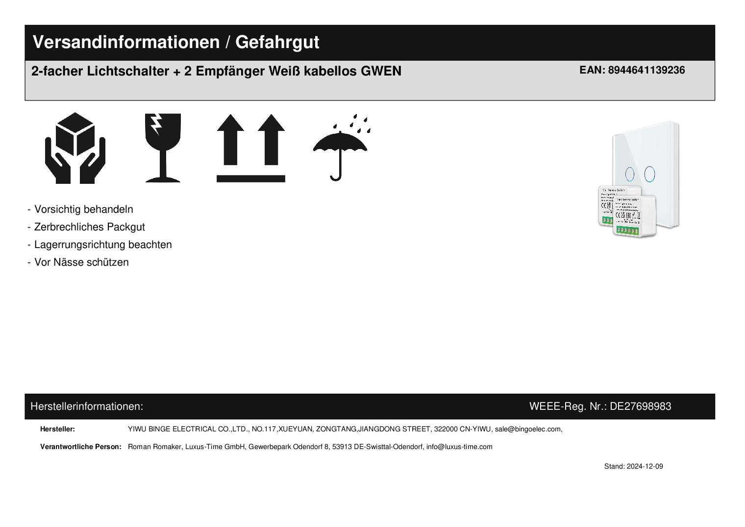Nach der Synchronisation mit dem Schalter kann dieser beliebig platziert werden . Da der Schalter batteriebetrieben ist, ist keine Unterputzdose bzw. zusätzliche Strom-Versorgung nötig.
