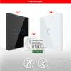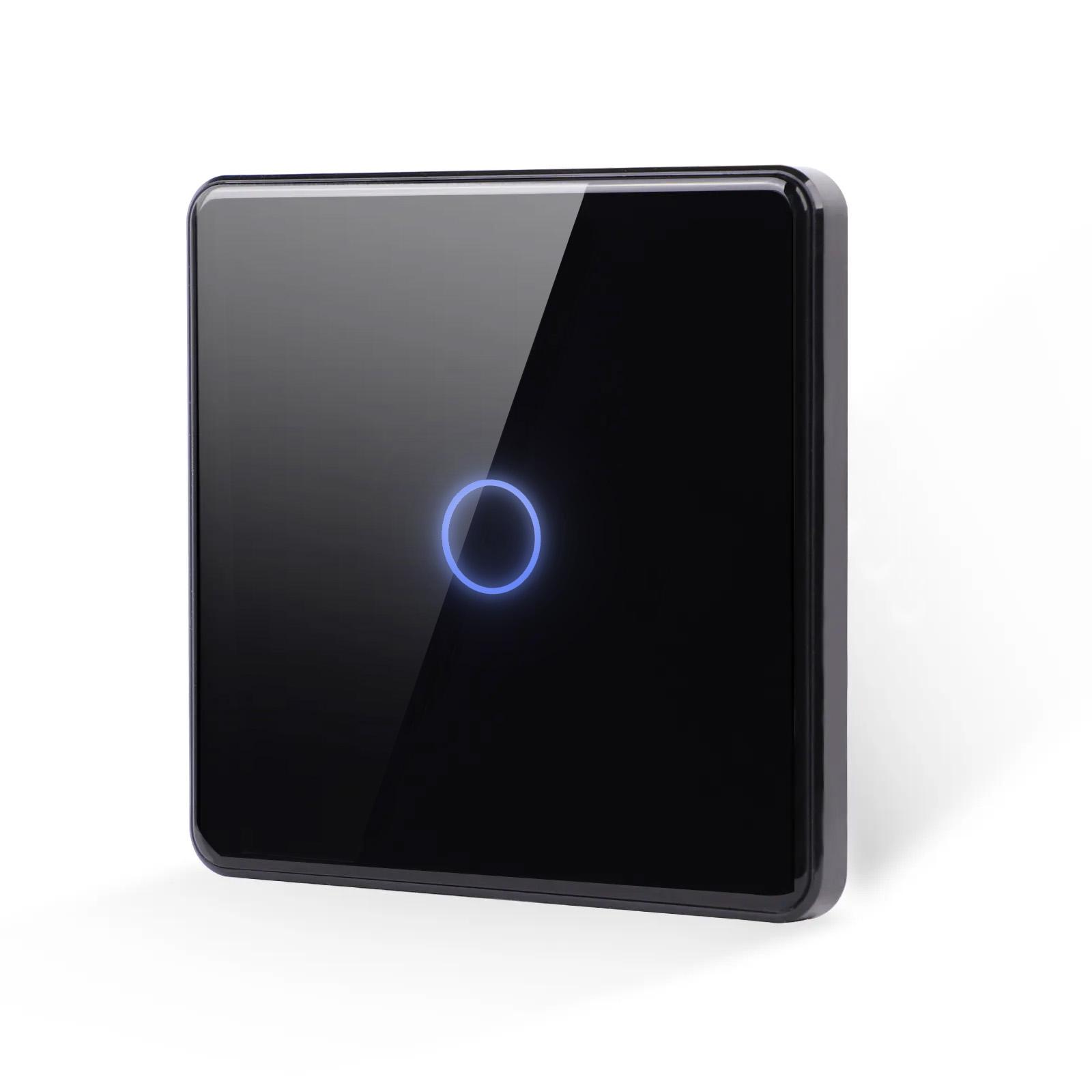Einfacher Funk-Schalter in Schwarz Dieser einfache Funk-Lichtschalter kann mit unserem Empfänger verbunden werden, um eine bestehende, mechanische Wechselschaltung zu erweitern oder eine Leuchte zu steuern zu der keine kabelgebundene Verbindung besteht. Der Empfänger kann dabei in der Leuchtenfassung oder in der Unterputzdose des mechanischen Schalters verbaut werden. Nach der Synchronisation mit dem Schalter kann dieser beliebig platziert werden. Da der Schalter batteriebetrieben ist, ist keine Unterputzdose bzw. zusätzliche Strom-Versorgung nötig. Der Schalter kann mit Hilfe des beiliegenden Klebestreifens an einer beliebigen, glatten Oberfläche befestigt werden. Der Schalter kann auch an einer Fläche verschraubt werden. Durch die Glasblende wird dieser Schalter mit moderner Sensortechnik zu einem echten Hingucker. Er kann nicht vergilben oder verblassen und ist wasserfest. Pro Empfänger lassen sich bis zu 4 Schalter verbinden . Damit kann auch eine Wechselschaltung realisiert werden. Eine Lampe mit Empfänger kann dann von bis zu 4 Orten bedient werden. Durch leichtes Berühren der Kreisfläche wird der Lichtschalter betätigt. Der Schalter leuchtet blau auf , wenn er betätigt wird. Anleitung Test Methode: Drücken Sie den Knopf kurz, um zu testen. Anweisung zum Verbinden: 1. Drücken Sie den Knopf und halten ihn bis das Anzeigelicht blinkt. 2. Drücken Sie den Knopf auf dem kabellosen Sender. Die Verbindung ist erfolgreich. Löschen der Verbindung: 1. Drücken Sie den Knopf bis das Anzeigelicht blinkt, dann lassen Sie den Knopf los. 2. Drücken Sie den Knopf und halten Sie ihn wieder bis das Anzeigelicht dauerhaft leuchtet. Technische Daten: Frequenz: 433 Mhz Batterie Typ: 2x Knopfzelle CR2025 (Im Lieferumfang nicht enthalten) Reichweite Sender-Empfänger: 50 m Stromversorgung: 110-250V AC Maximale Last: 1000 Watt, LED-Lampe 400Watt Abmessungen: Schalter: 86 x 86 x 13 mm