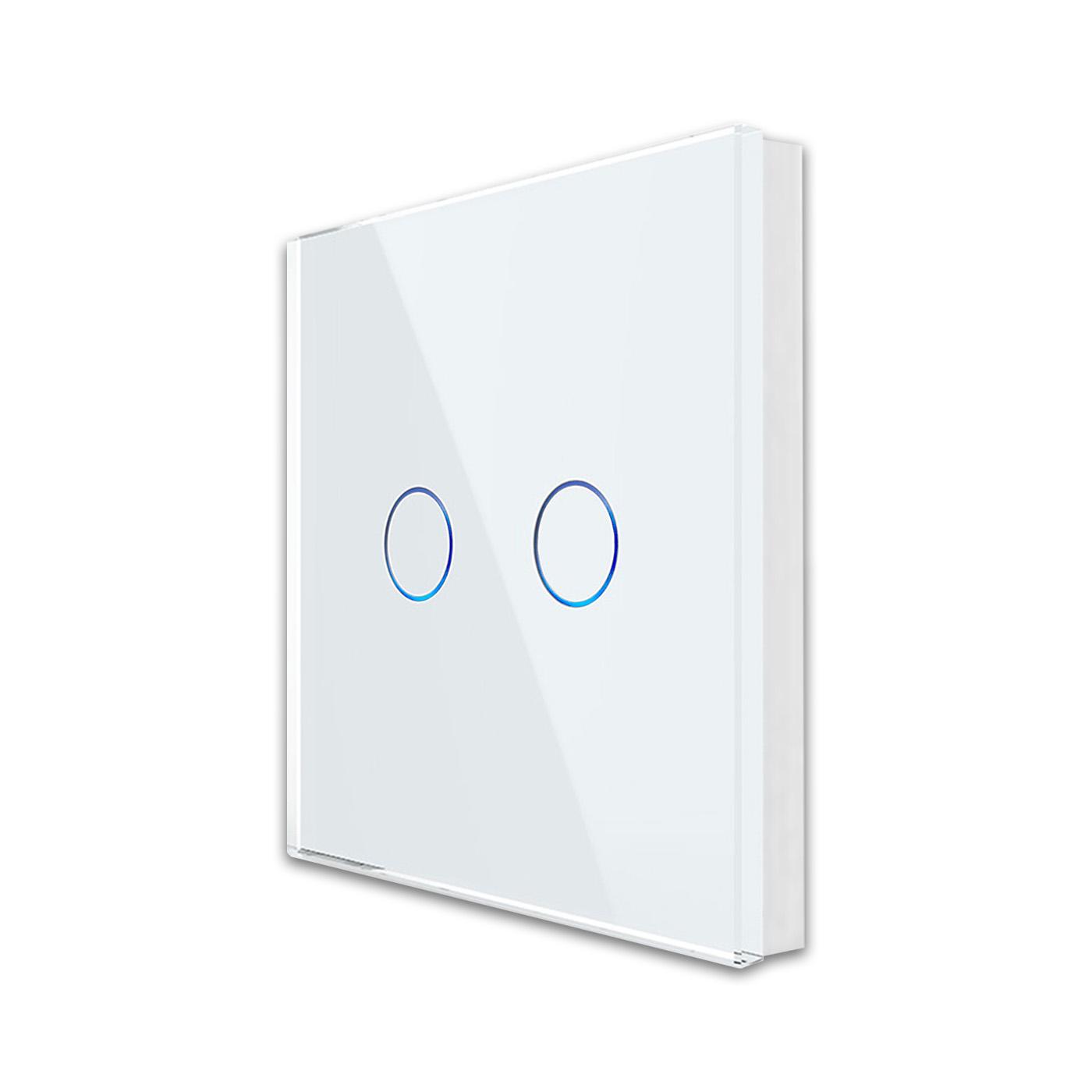2-facher Funk-Lichtschalter batteriebetrieben Dieser zweifache Funk-Lichtschalter kann mit zwei unserer Empfänger verbunden werden, um bestehende mechanische Wechselschaltung zu erweitern oder Leuchten zu steuern zu denen keine kabelgebundene Verbindung besteht. Der Empfänger kann dabei entweder in der Leuchtenfassung oder in der Unterputzdose hinter einem der kabelgebundenen Schalter verbaut werden. Nach der Synchronisation mit dem Schalter kann dieser beliebig platziert werden . Da der Schalter batteriebetrieben ist, ist keine Unterputzdose bzw. zusätzliche Strom-Versorgung nötig. Der Schalter kann mit Hilfe des beiliegenden Klebestreifens an einer beliebigen, glatten Oberfläche befestigt werden. Der Schalter kann auch an einer Fläche verschraubt werden. Durch die Glasblende wird dieser Schalter mit moderner Sensortechnik zu einem echten Hingucker. Er kann nicht vergilben oder verblassen und ist spritzwassergeschützt. Pro Empfänger lassen sich bis zu 4 Schalter verbinden . Damit kann auch eine Wechselschaltung realisiert werden. Eine Lampe mit Empfänger kann dann von bis zu 4 Orten bedient werden. Durch leichtes Berühren der Kreisfläche wird der Lichtschalter betätigt. Der Schalter leuchtet blau auf , wenn er betätigt wird. Anleitung Test Methode: Drücken Sie den Knopf kurz, um zu testen. Anweisung zum Verbinden: 1. Drücken Sie den Knopf und halten ihn bis das Anzeigelicht blinkt. 2. Drücken Sie den Knopf auf dem kabellosen Sender. Die Verbindung ist erfolgreich. Löschen der Verbindung: 1. Drücken Sie den Knopf bis das Anzeigelicht blinkt, dann lassen Sie den Knopf los. 2. Drücken Sie den Knopf und halten Sie ihn wieder bis das Anzeigelicht dauerhaft leuchtet. Technische Daten: Frequenz: 433 Mhz Batterie Typ: 2 x Knopfzelle CR2025 (Im Lieferumfang nicht enthalten) Reichweite Sender-Empfänger: 50 m Stromversorgung: 110-250V AC Maximale Last: 1000 Watt, LED-Lampe 400Watt Abmessungen: Schalter: 86 x 86 x 13 mm Herstellerangaben:YIWU BINGE ELECTRICAL CO.,LTD.
