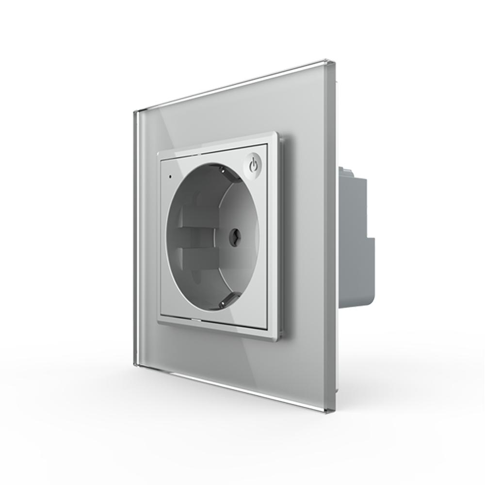 Livolo EC Steckdosen-Modul mit Glasrahmen in Grau Die Livolo EC Steckdose ermöglicht es Ihnen zusammen mit dem Livolo EC Gateway, die Geräte, die an die Steckdose angeschlossen werden, per App zu steuern oder eine Routine zu hinterlegen. Durch die Livolo Home App kann die Steckdose von überall gesteuert werden. Auch die Sprachsteuerung über Google Home oder Amazon Alexa ist möglich. Bitte beachten Sie, dass die Livolo EC Produkte nur mit dem Livolo EC Gateway genutzt werden können. Mit ein paar Klicks in der App können Sie z. B. festlegen, dass die Kaffeemaschine jeden Morgen zu einer bestimmten Uhrzeit angeschaltet wird. In Kombination mit der passenden Glasblende wird diese Steckdose zu einem echten Hingucker. Einfache und schnelle Montage, sowohl vertikal als auch horizontal . In unserem Shop finden Sie auch Spreizkrallen (LG-01) im 2er Pack, für Unterputzdosen ohne Verschraubungsmöglichkeit. Geeignet für Hohlwände und ältere Häuser (Baujahr vor 1970). Bei Verwendung von Spreizkrallen sind 68 mm große Unterputzdosen besser geeignet. Die Module werden mittels der beiliegenden Metallrahmen durch Schrauben an den Unterputzdosen befestigt. Der Austausch erfolgt wie bei anderen Wipp-Schalter-Herstellern. Ersetzen Sie einfach Ihre alten Wipp-Schalter durch ein neues, langlebiges Design. Die Verkabelung bleibt die gleiche. Die Lichtschalter- und Steckdosen-Module sind für Unterputzdosen mit 60-68 mm Durchmesser geeignet . Der Lochabstand für Mehrfach-Blenden beträgt 71 mm. Bei uns erhalten Sie die komplette Livolo Bandbreite; von einem einfachen Wipp-Lichtschalter bis zum smarthome-fähigen Touch-Rollladenschalter. Technische Daten: Betriebsspannung: 100-250V Stromspannung: 50/60Hz 16A Entfernung: max. innen 10m, freie Fläche 20m Schutzart: IP 20 Lebensdauer: über 50000 Male Abmessungen: 80 mm x 80 mm x 45 mm Lieferumfang: Im Lieferumfang enthalten ist: