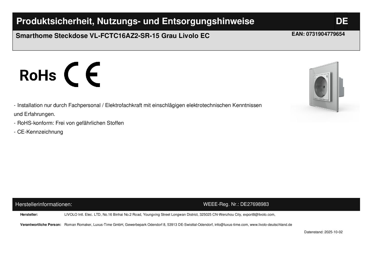 Herstellerangaben:LIVOLO INTERNATIONAL ELECTRIC LTD