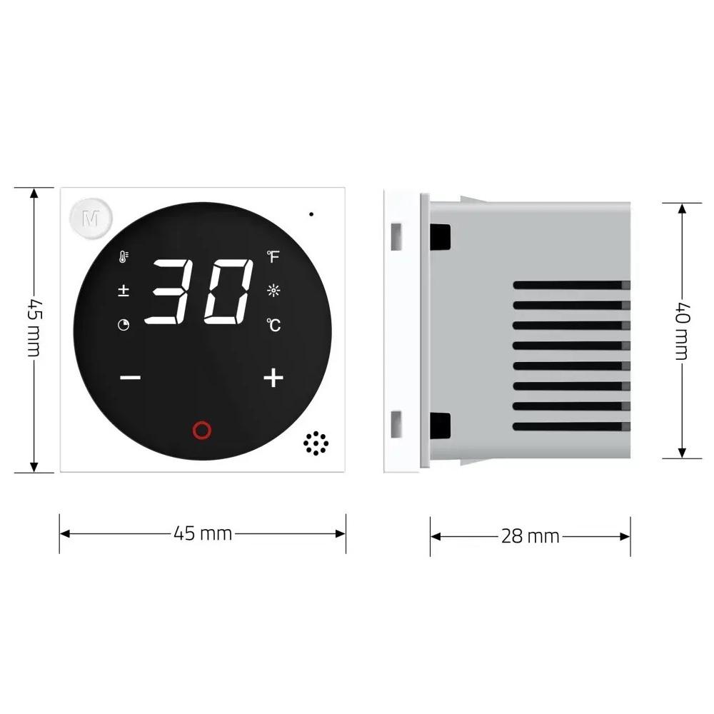 LIVOLO Innenleben digitales EC Raumthermostat für Fußboden/Elektroheizung in Weiß optional mit BodenfühlerBitte beachten Sie, dass es sich bei diesem Angebot nur um ein Modul OHNE Glasblende handelt. Durch den externen Bodensensor liefert das Thermostat besonders genaue Erlebnisse. Sie können das Thermostat auch wahlweise ohne externen Sensor verwenden. Dies kann allerdings dazu führen, dass die Messergebnisse ungenauer ausfallen. Einstellbar ist das Thermostat über die Berührungspunkte auf der Vorderseite oder die Livolo App. Das Display ist während des Betriebes beleuchtet , die Helligkeit ist einstellbar. In unserem Shop finden Sie auch Spreizkrallen (LG-01) im 2er Pack, für Unterputzdosen ohne Verschraubungsmöglichkeit. Geeignet für Hohlwände und ältere Häuser (Baujahr vor 1970). Bei Verwendung von Spreizkrallen sind 68 mm große Unterputzdosen besser geeignet.
