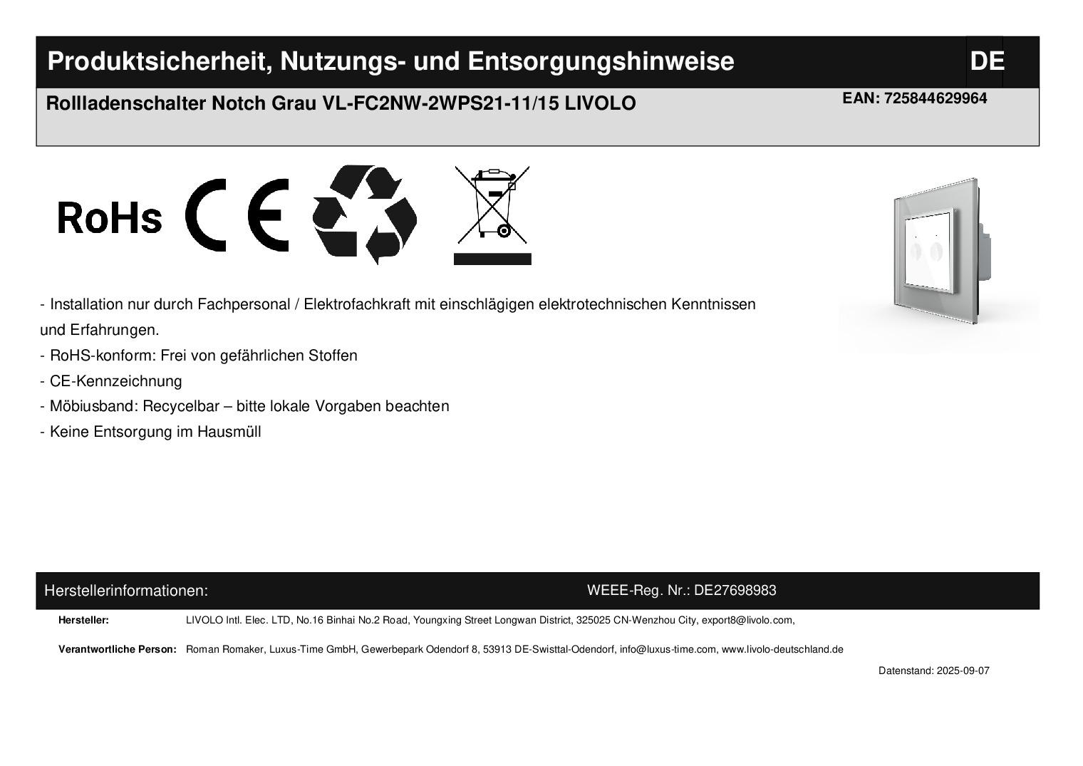 - 1 x Livolo Innenleben Touch-Schalter, gemäß Bestellung