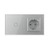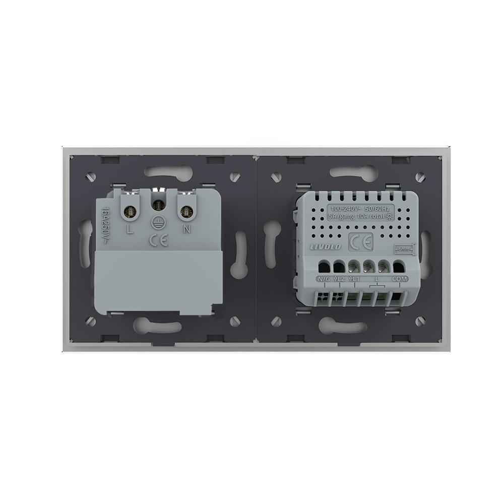Livolo EC Wechselschalter- und Steckdosen-Modul mit zweifachem Glasrahmen in Grau